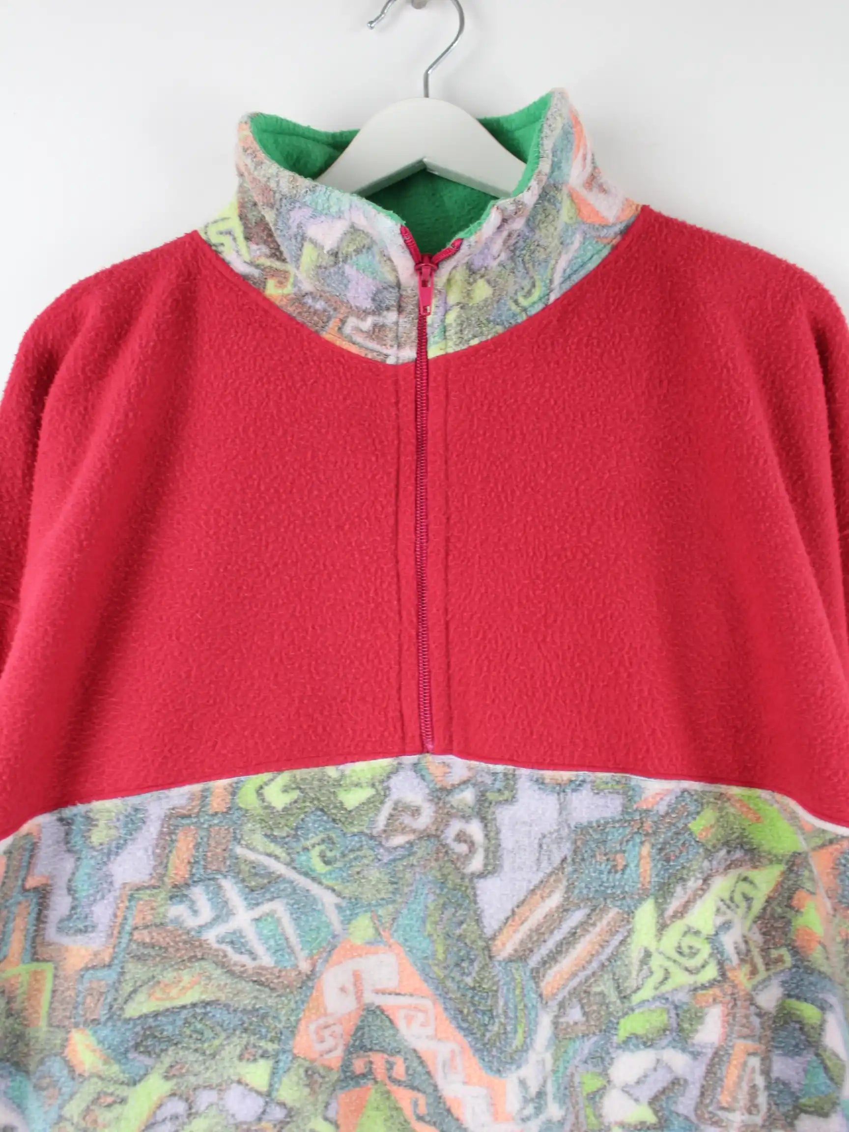 Vintage 90s Crazy Pattern Half Zip Fleece Jacke Mehrfarbig XL