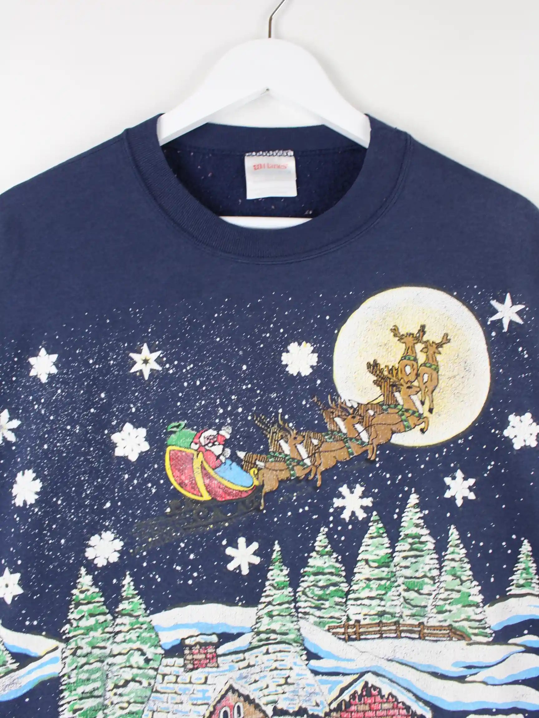 Hanes 90s Vintage Christmas Print Sweater Blau XL