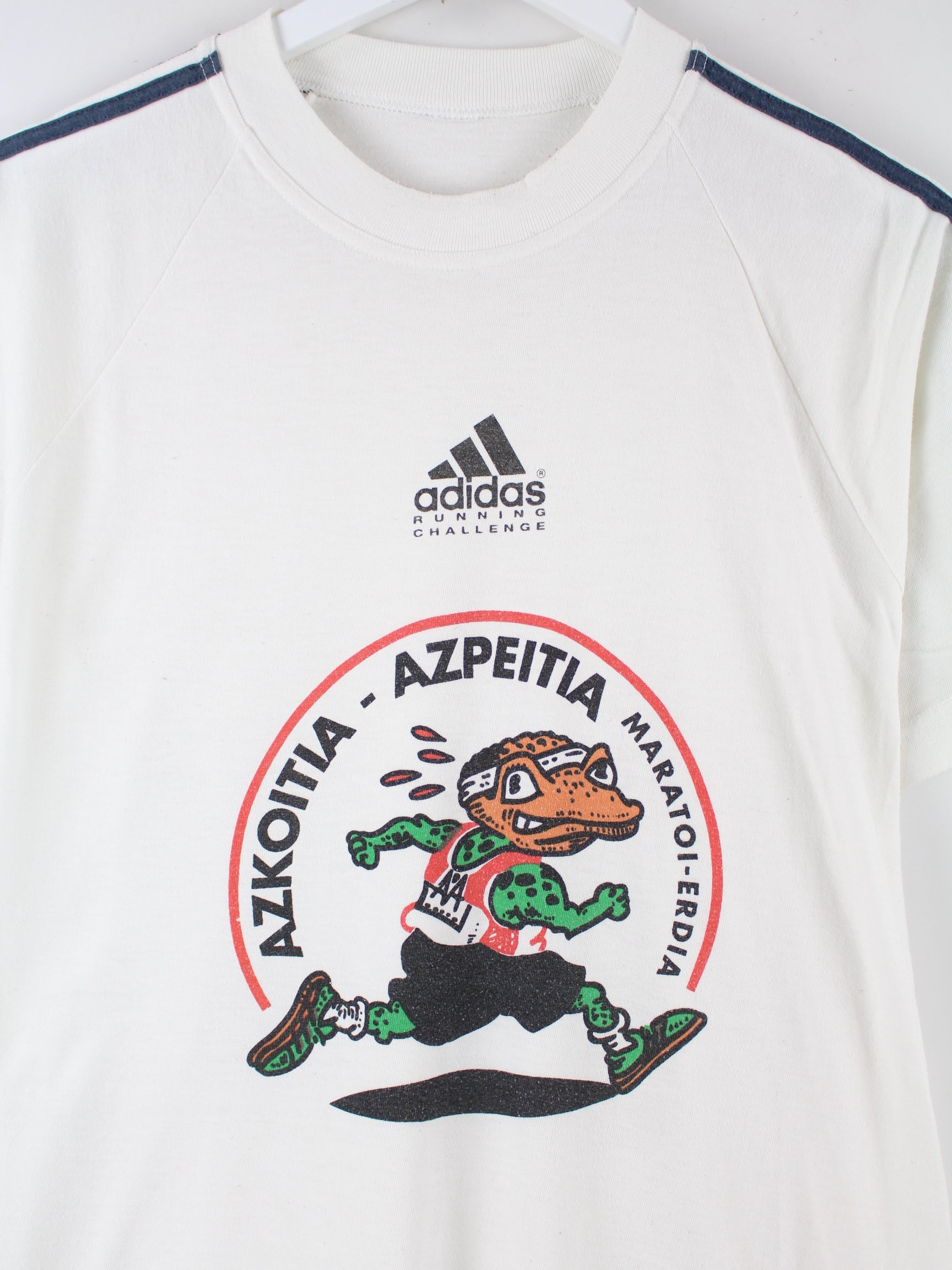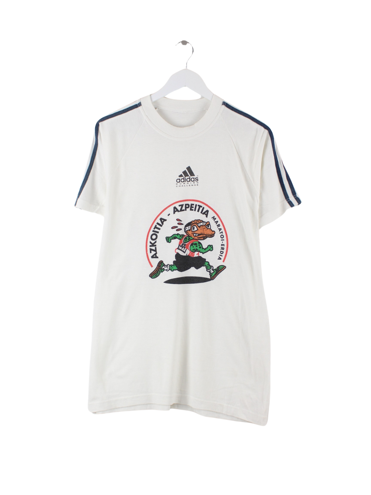 White T-shirt from the brand Adidas in size XXL. It is made of cotton and is in good condition. With a chic marathon print.