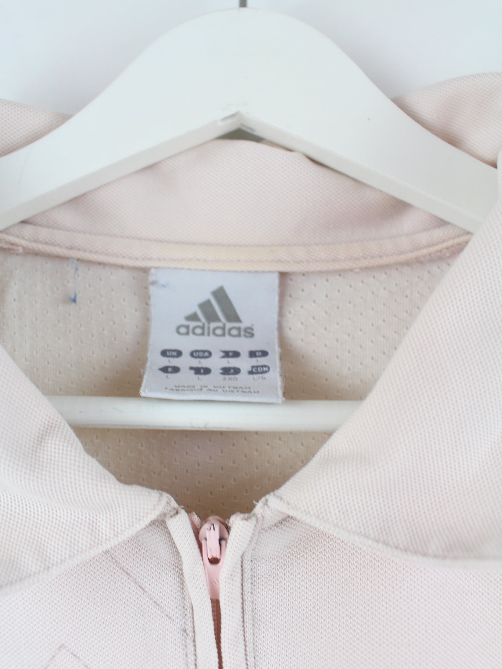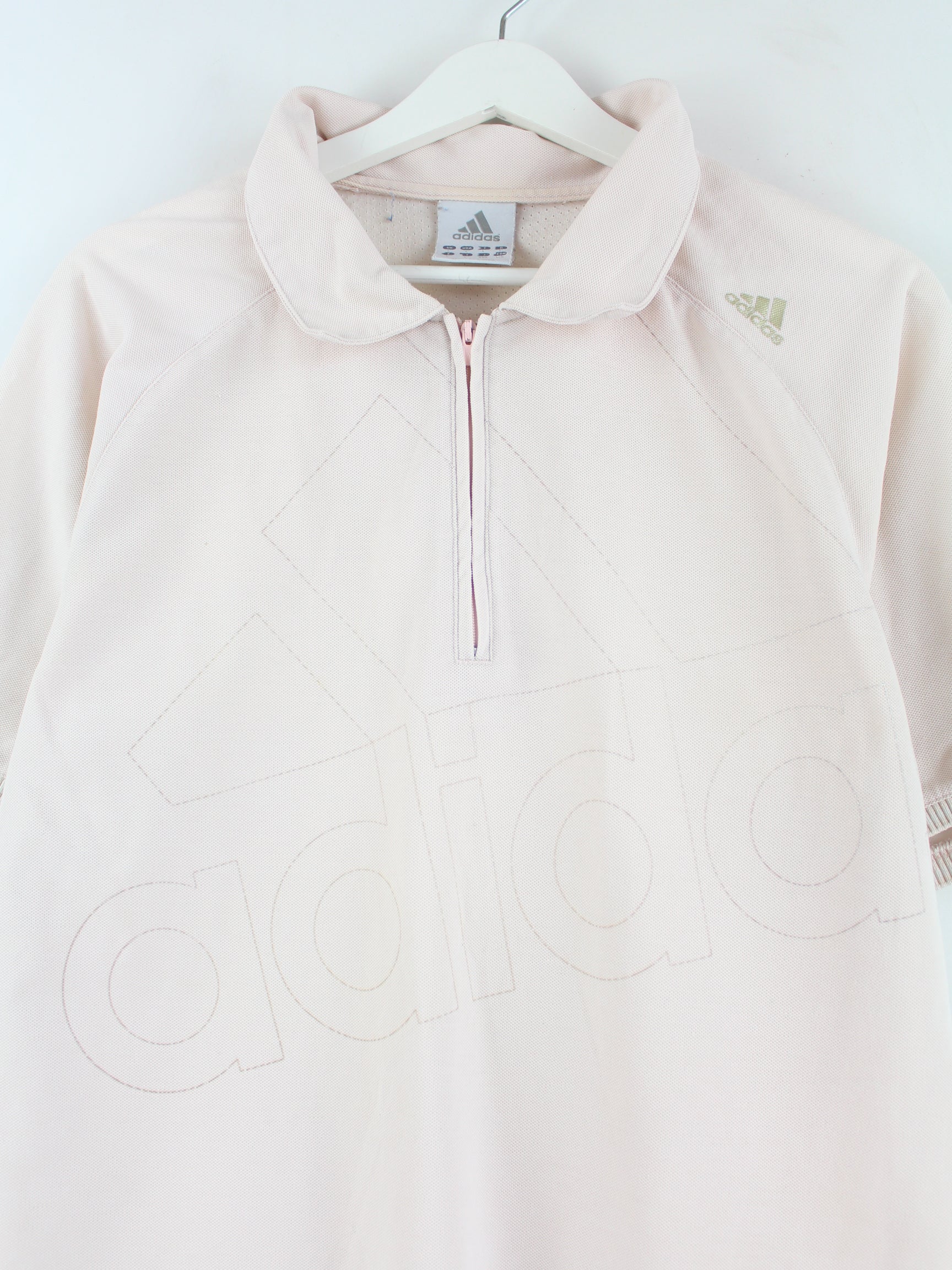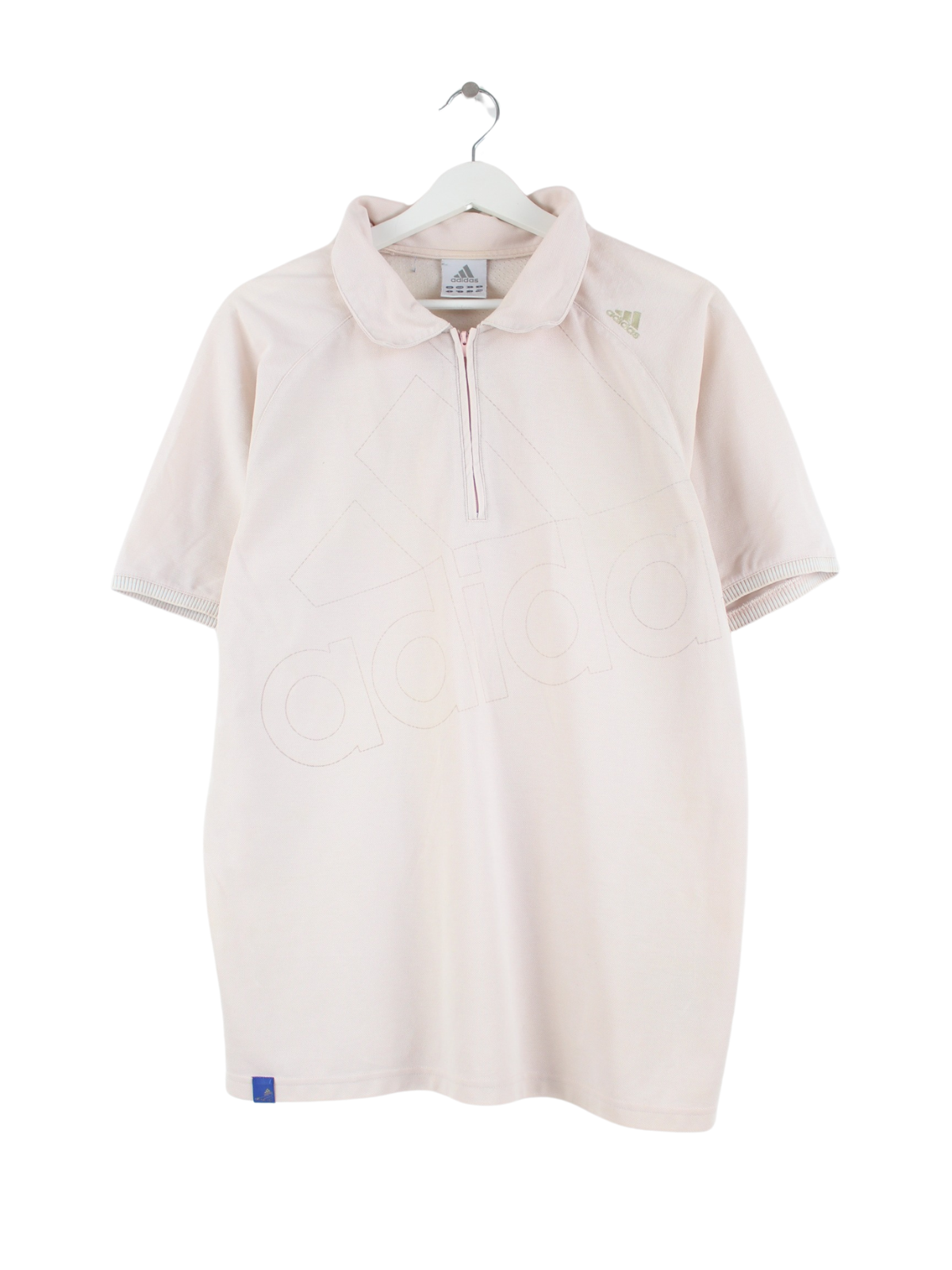 Pink polo shirt with short zip from the Adidas label from the early 2000s in size L. It is made of cotton and in good condition.