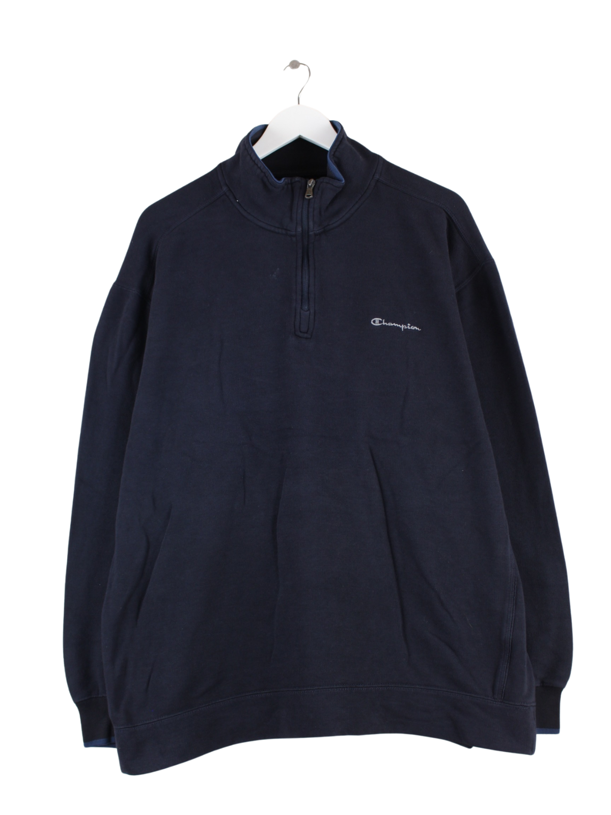 Sweater from the brand Champion with embroidered logo and half zip in size XXL. It is made from a cotton blend and is available in blue.
