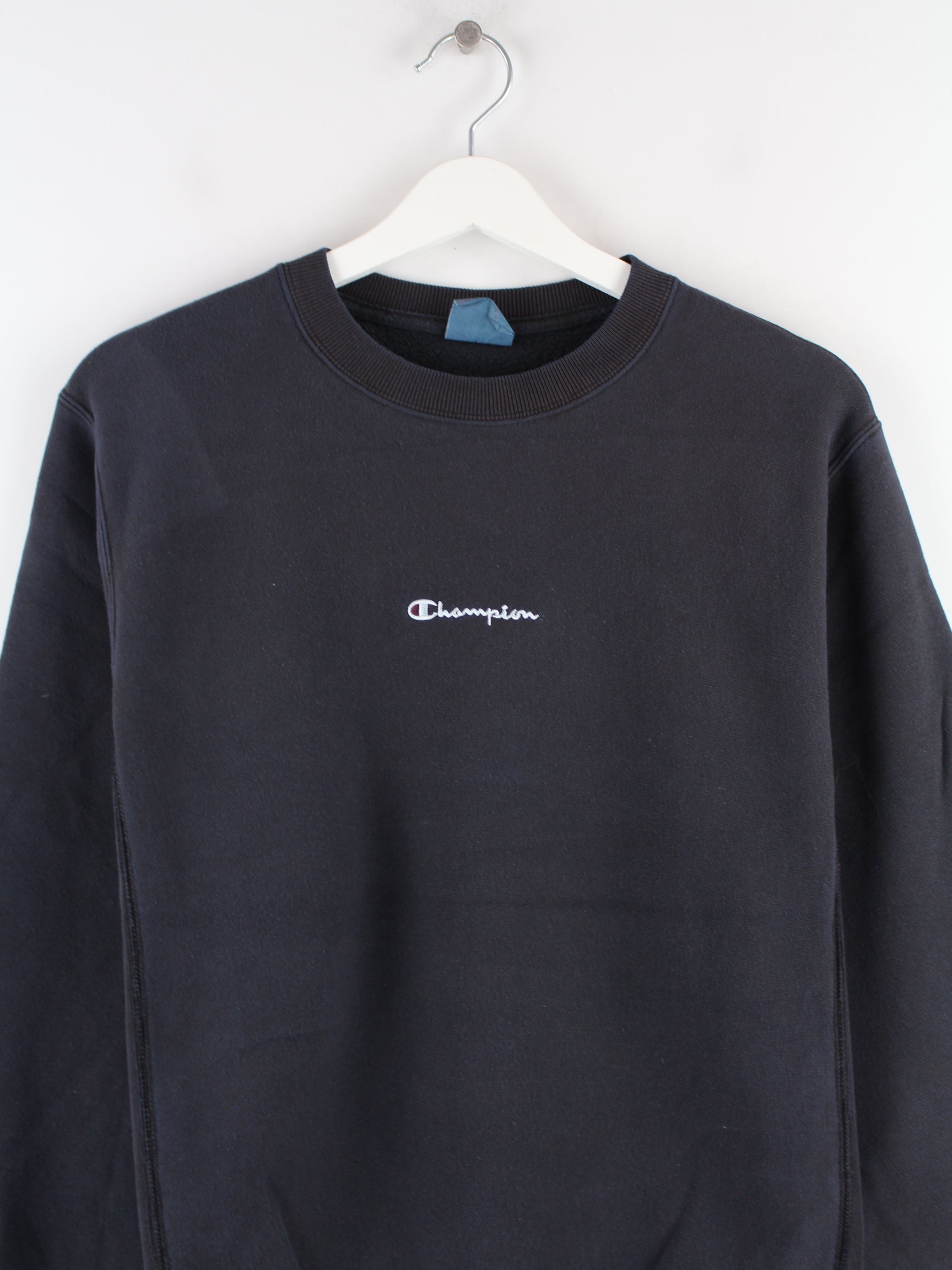 Sweater from the label Champion with embroidery in size S. It is made from a cotton blend and is available in blue.