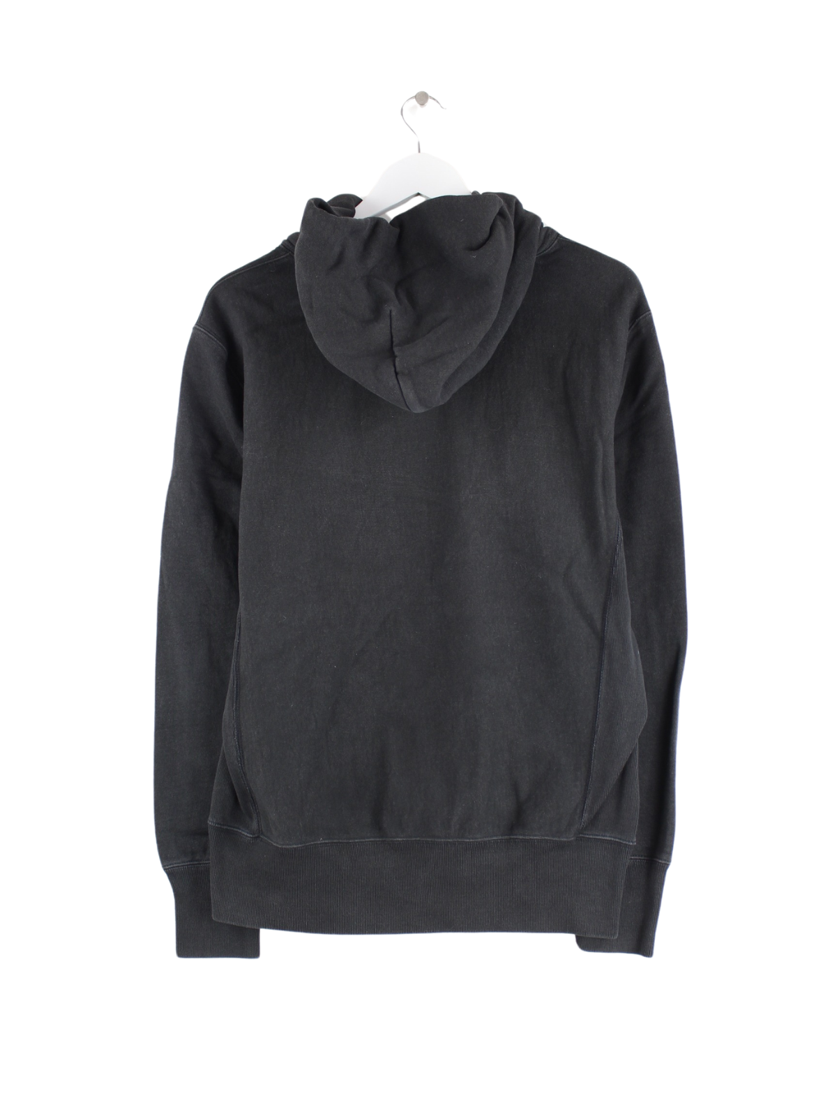 Black hoodie with embroidered logo from the Champion brand in size M. It is made from a cotton blend and is in good condition.