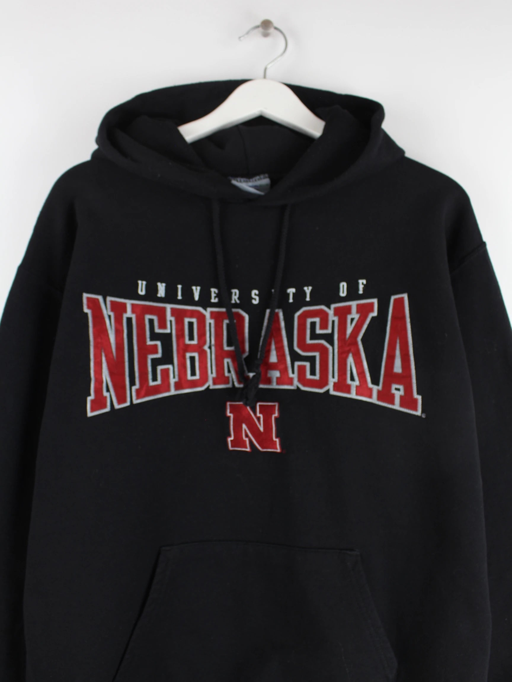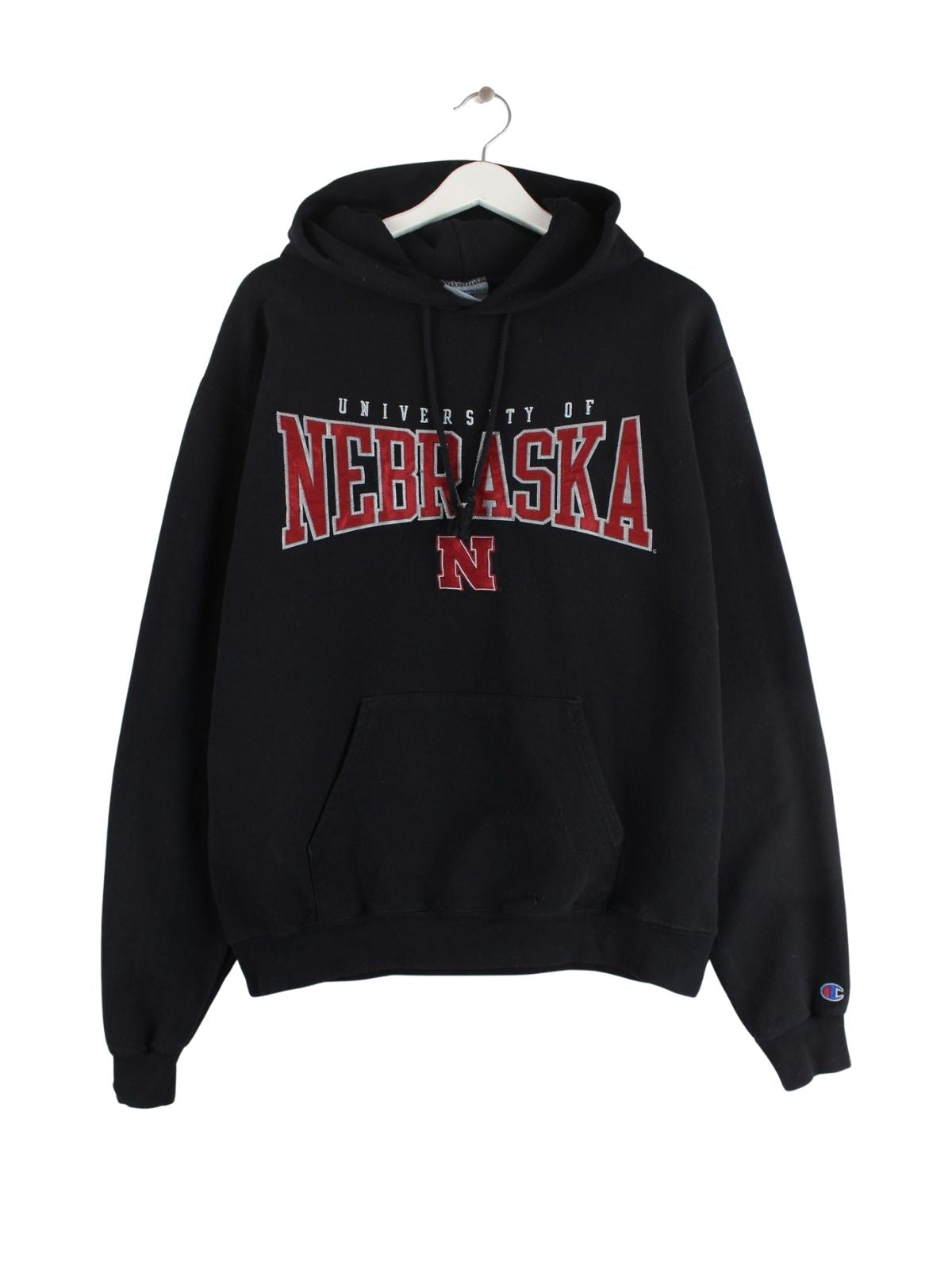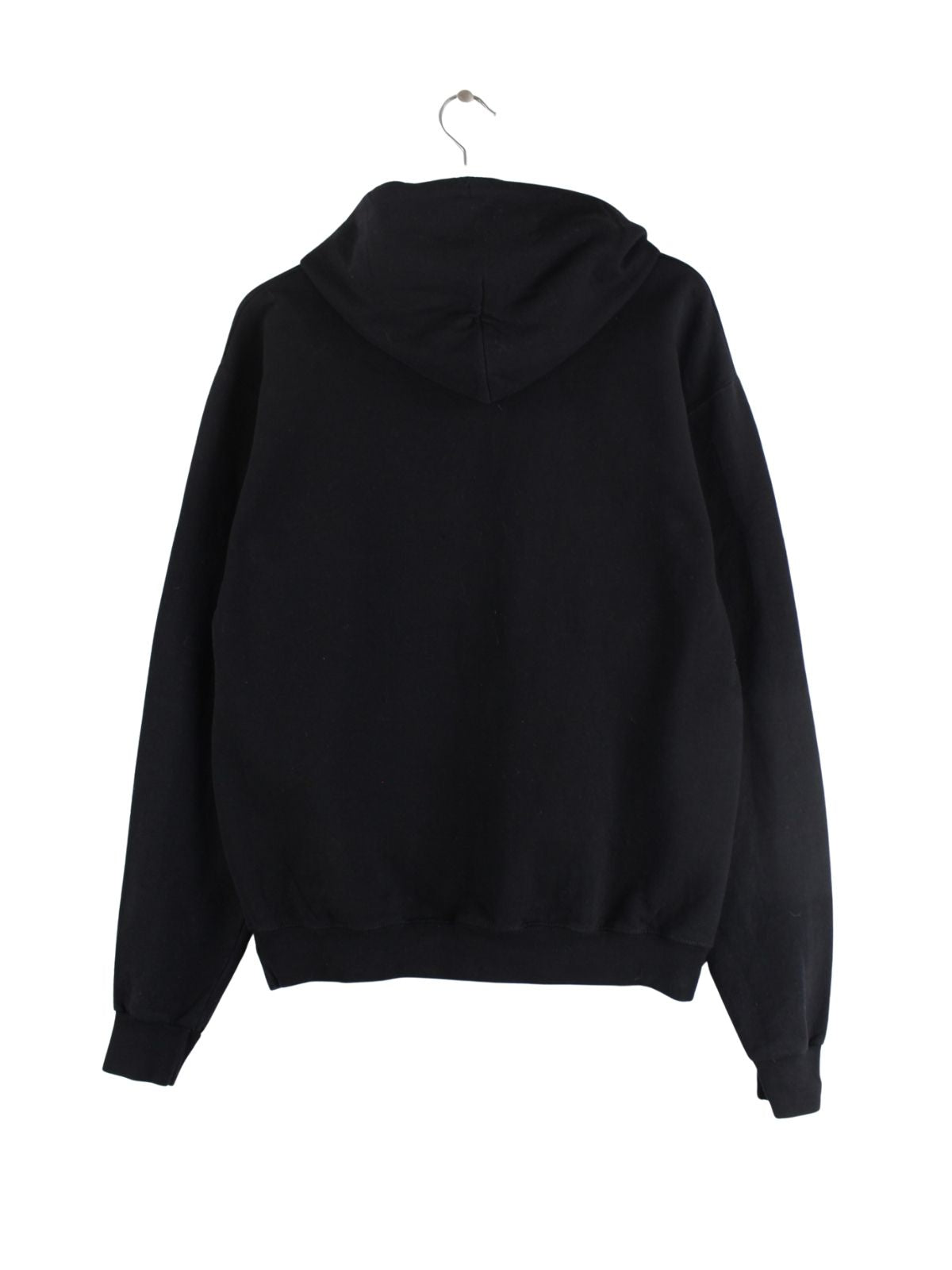 Schwarzer Hoodie von Champion in Größe M. Er ist aus einer Baumwollmischung produziert und in sehr gutem Zustand bei uns zu bekommen.