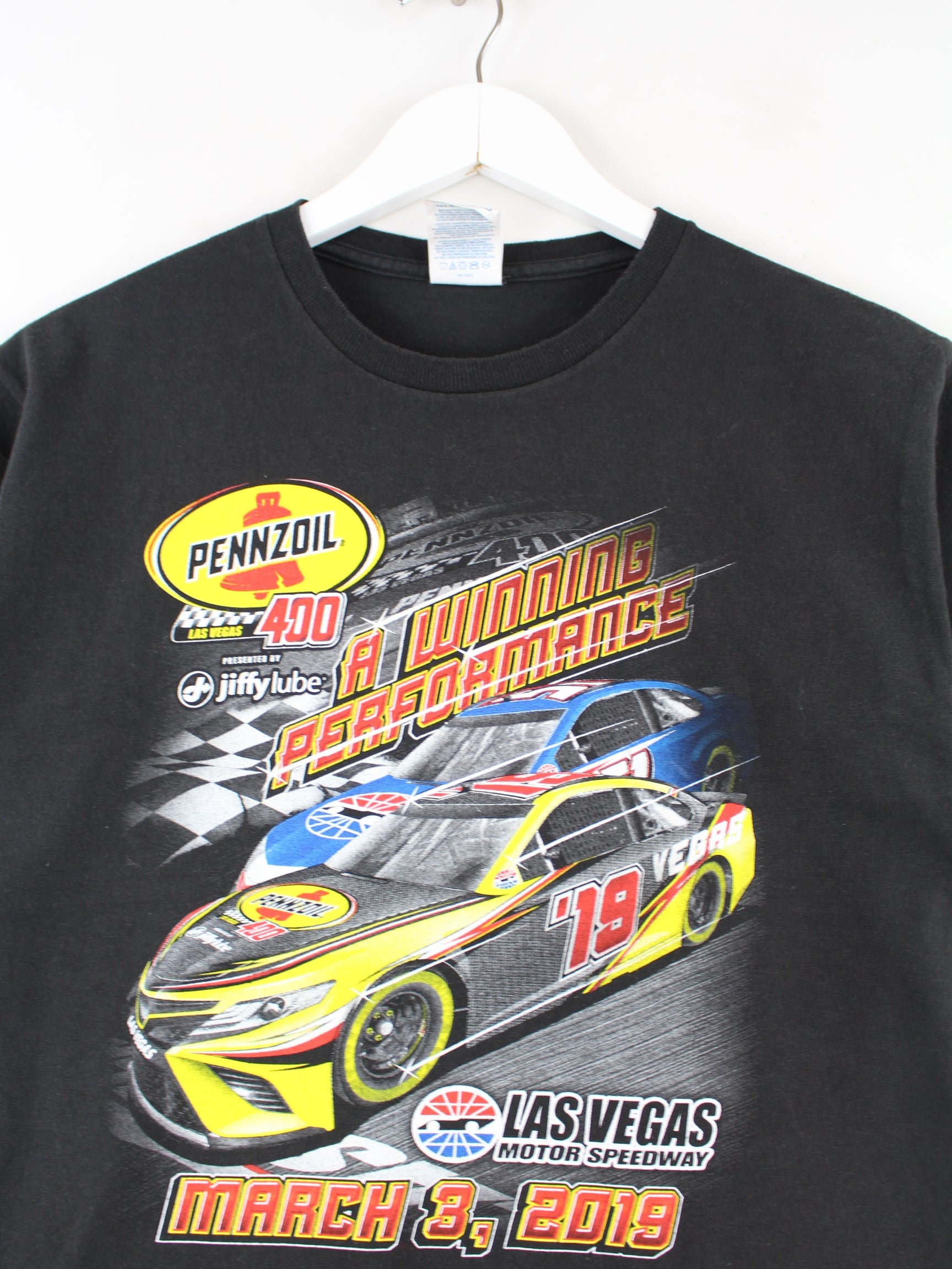 Black T-shirt from the brand Delta in size S. It is made of cotton and is in very good condition. With a rare racing print.