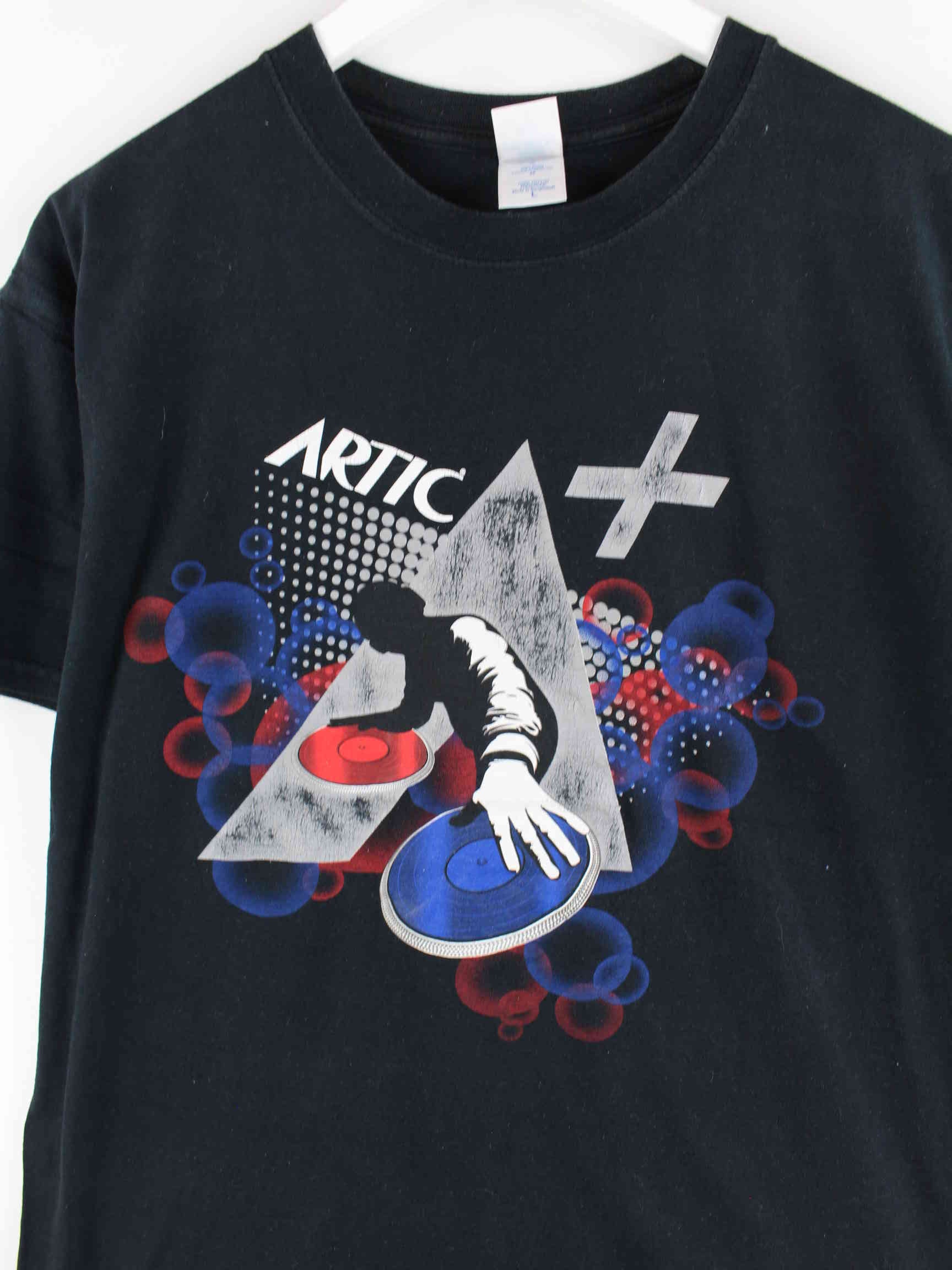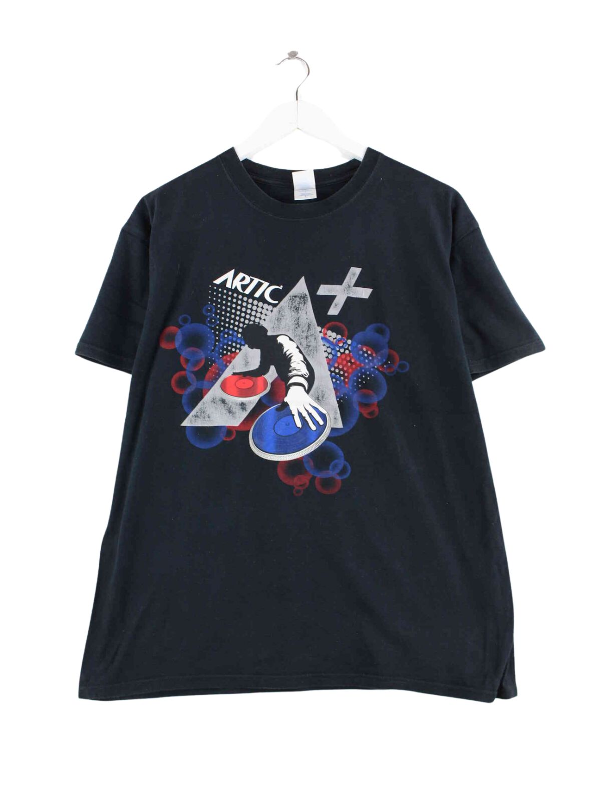 Black t-shirt from Gildan in size M. It is made of cotton and in very good condition in stock.