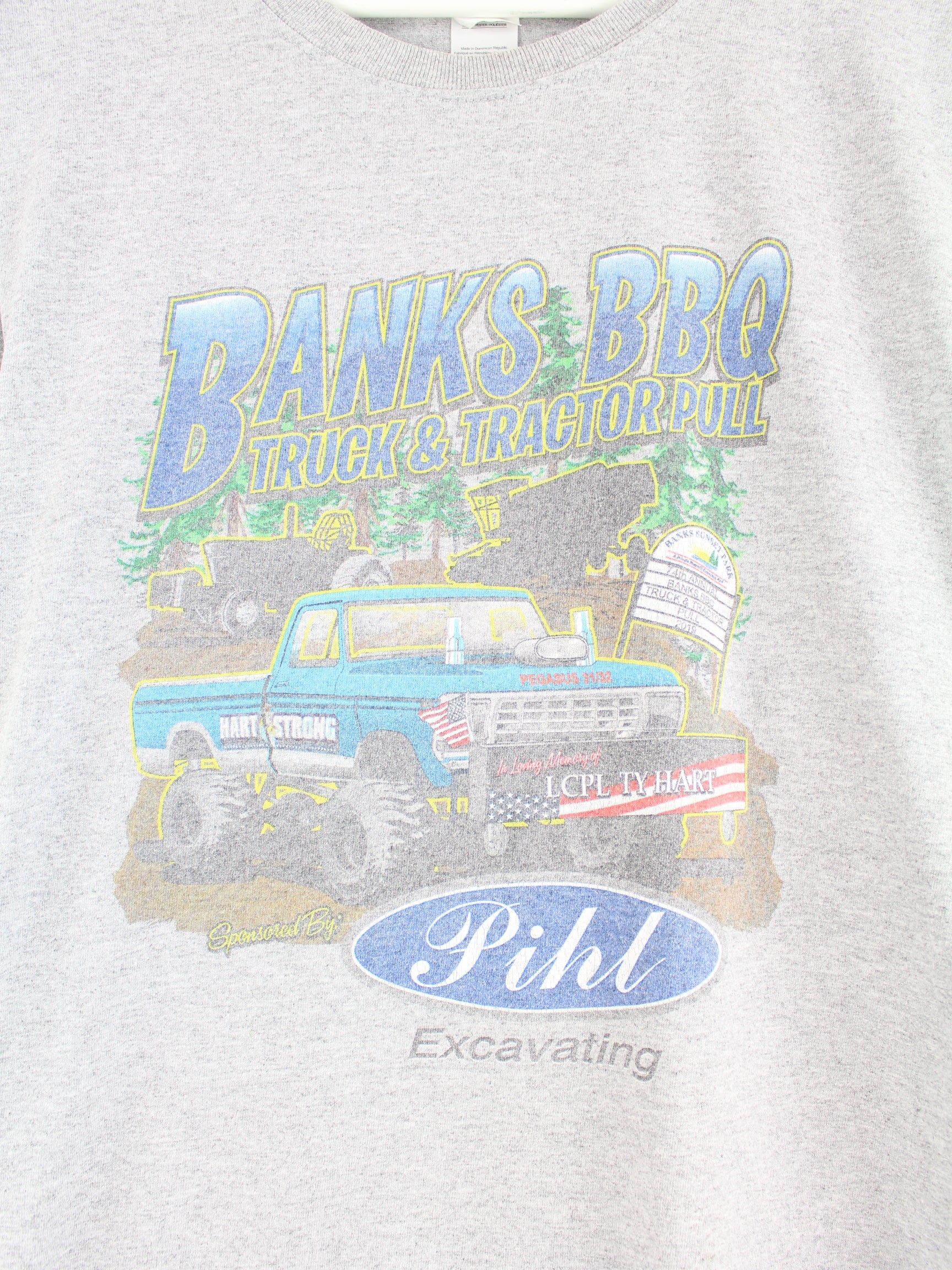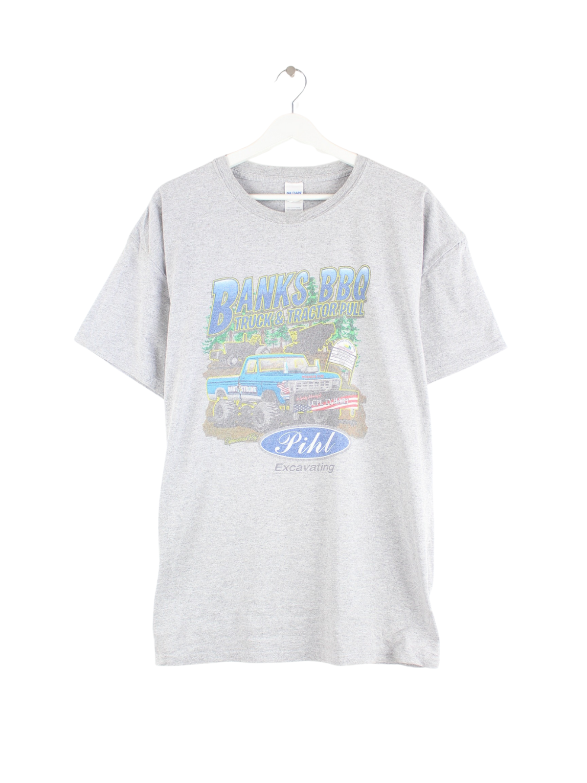 Gildan Banks BBQ Trucker Print T-Shirt Gray XL