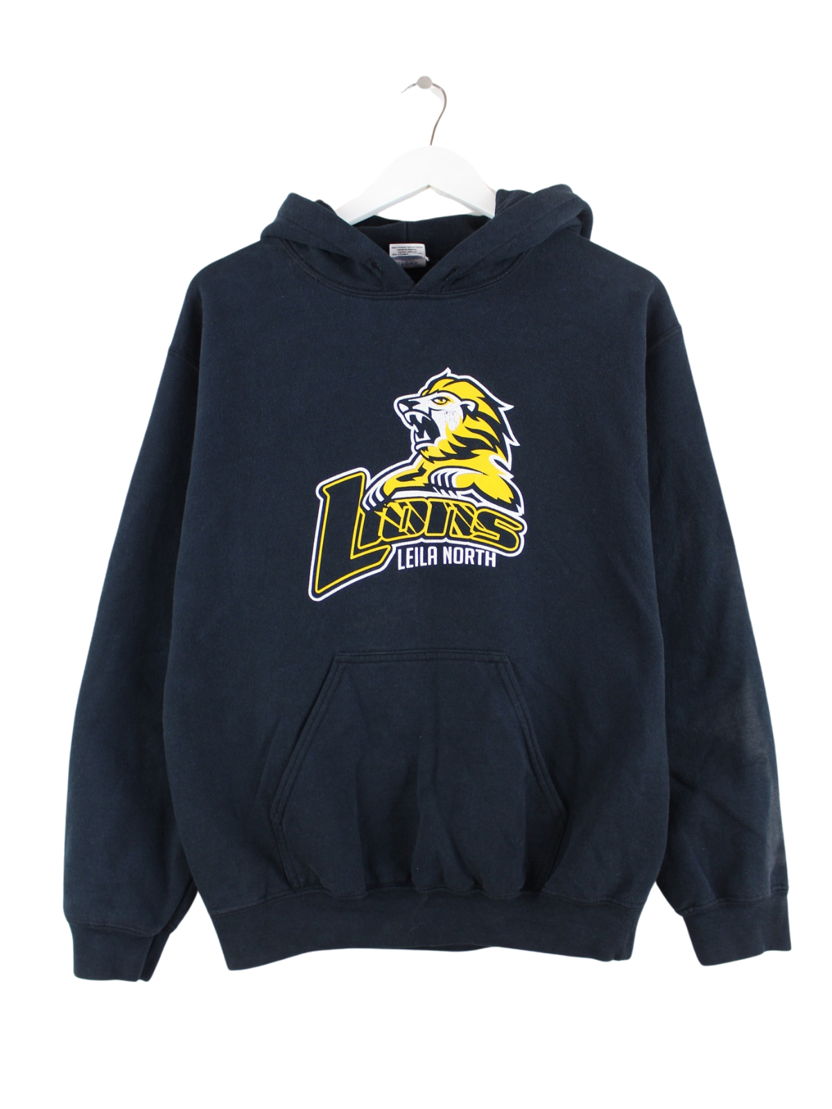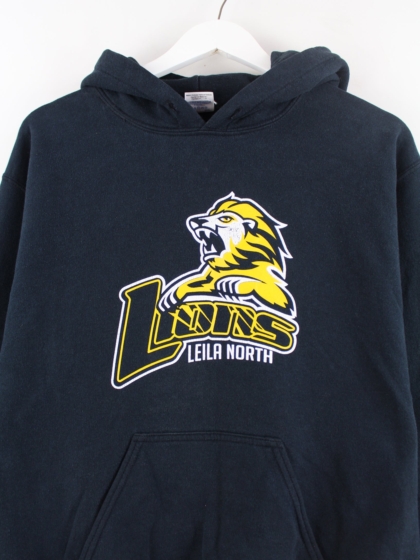 Hoodie from the label Gildan in size XS. It is made from a cotton blend and is available in black. With a great lions print.