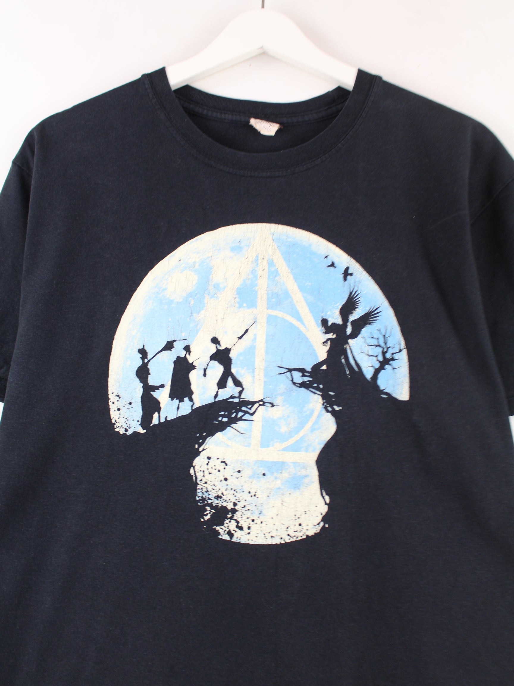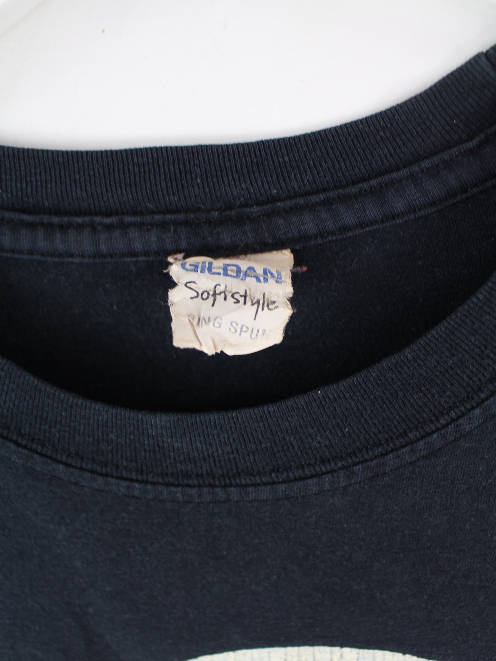 T-shirt from the brand Gildan in size M. It is made of cotton and available in black. With a chic print.