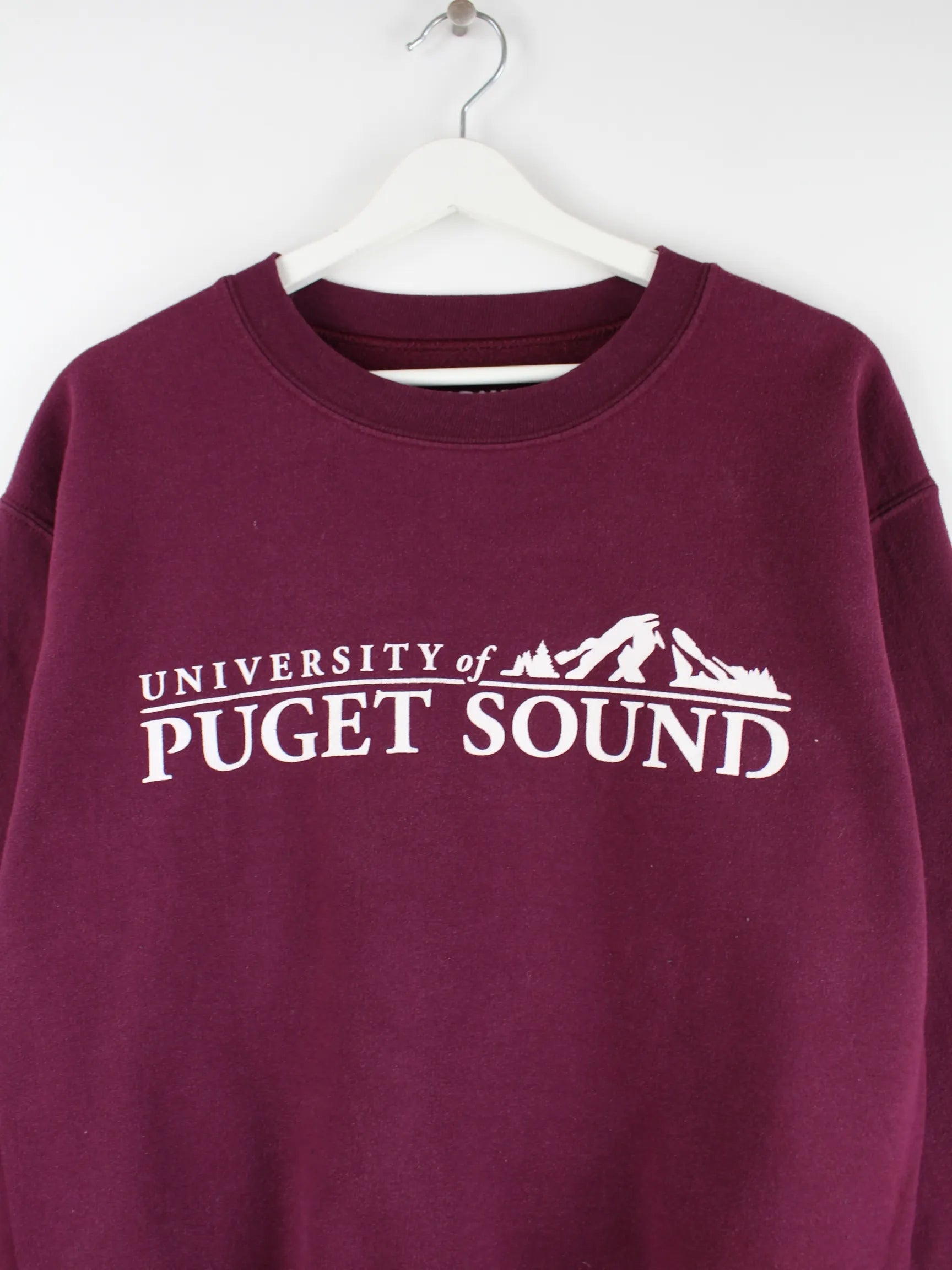 Roter Sweater vom Label Gildan in Größe S. Er ist aus einer Baumwollmischung gemacht und in sehr gutem Zustand vorrätig. Mit tollem University Print.