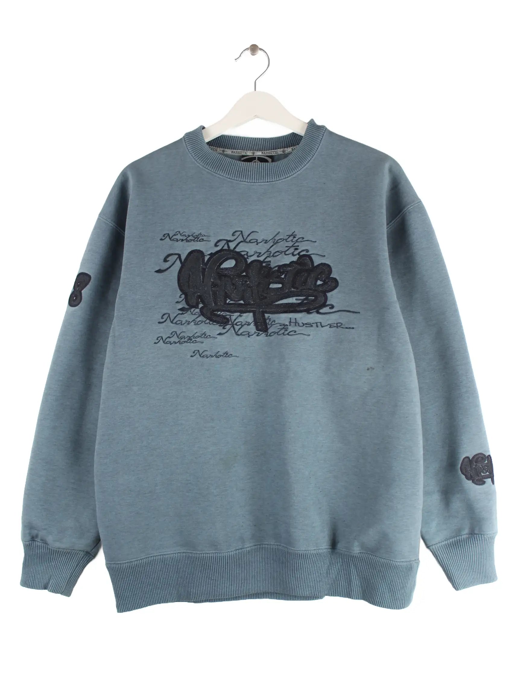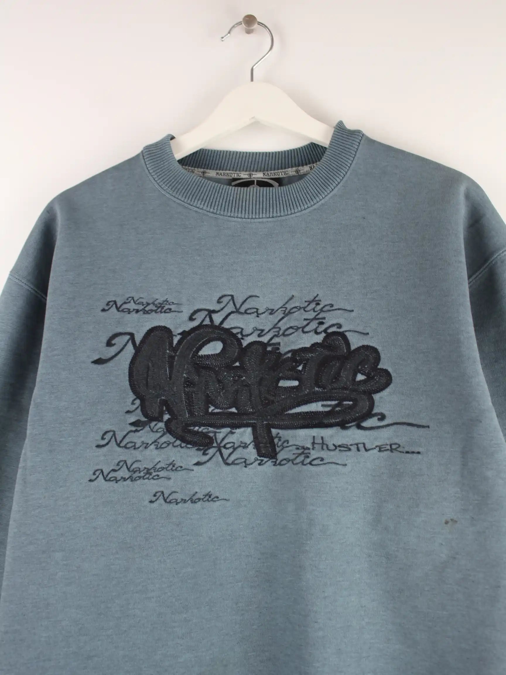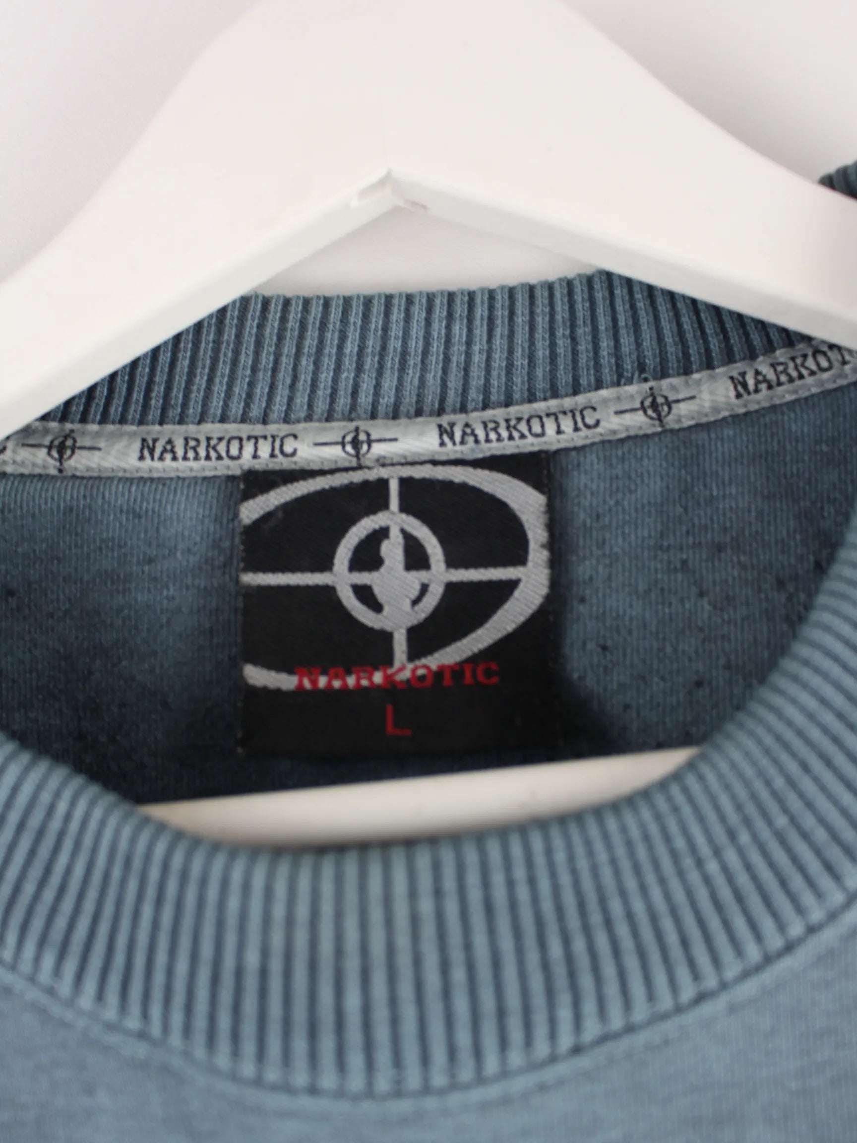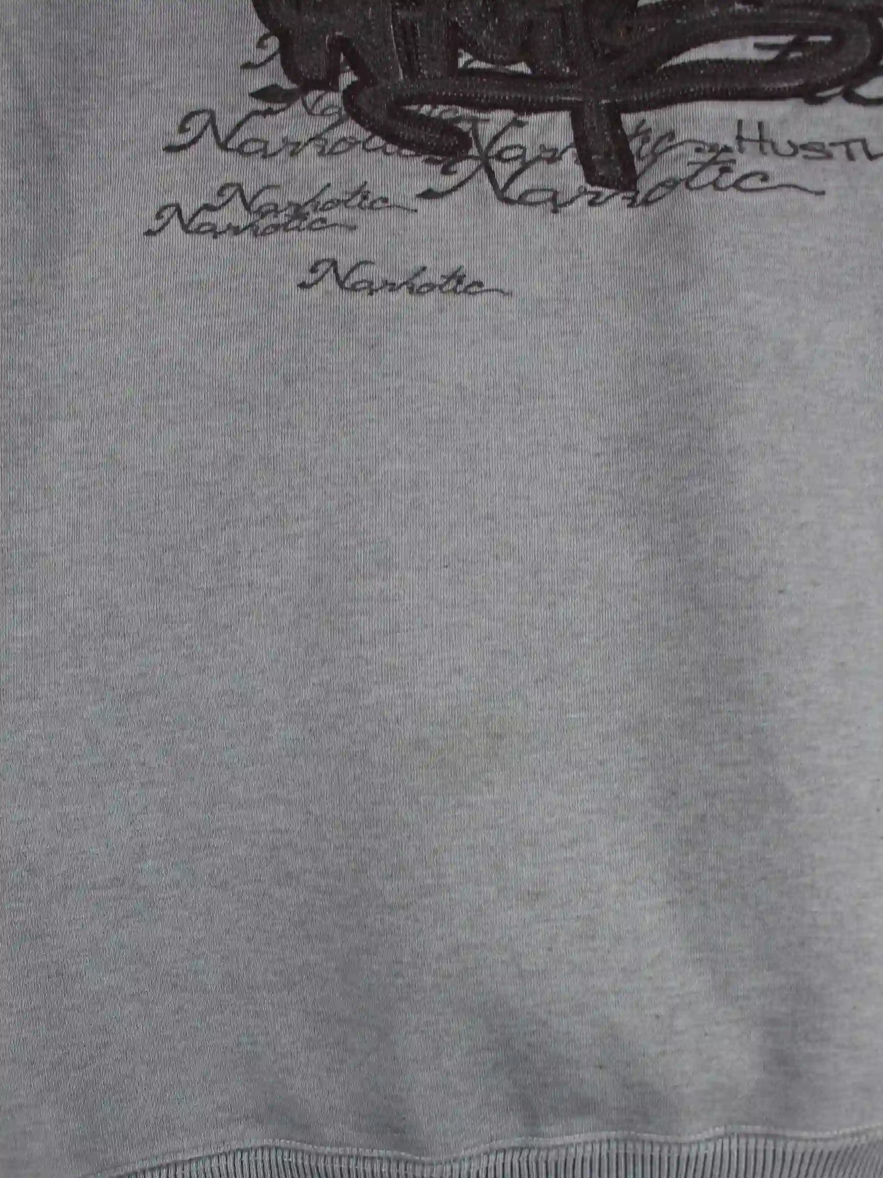 Sweater vom Brand Narkotic in Größe L aus Anfang der 2000'er. Er ist aus einer Baumwollmischung und in Grau im Bestand.