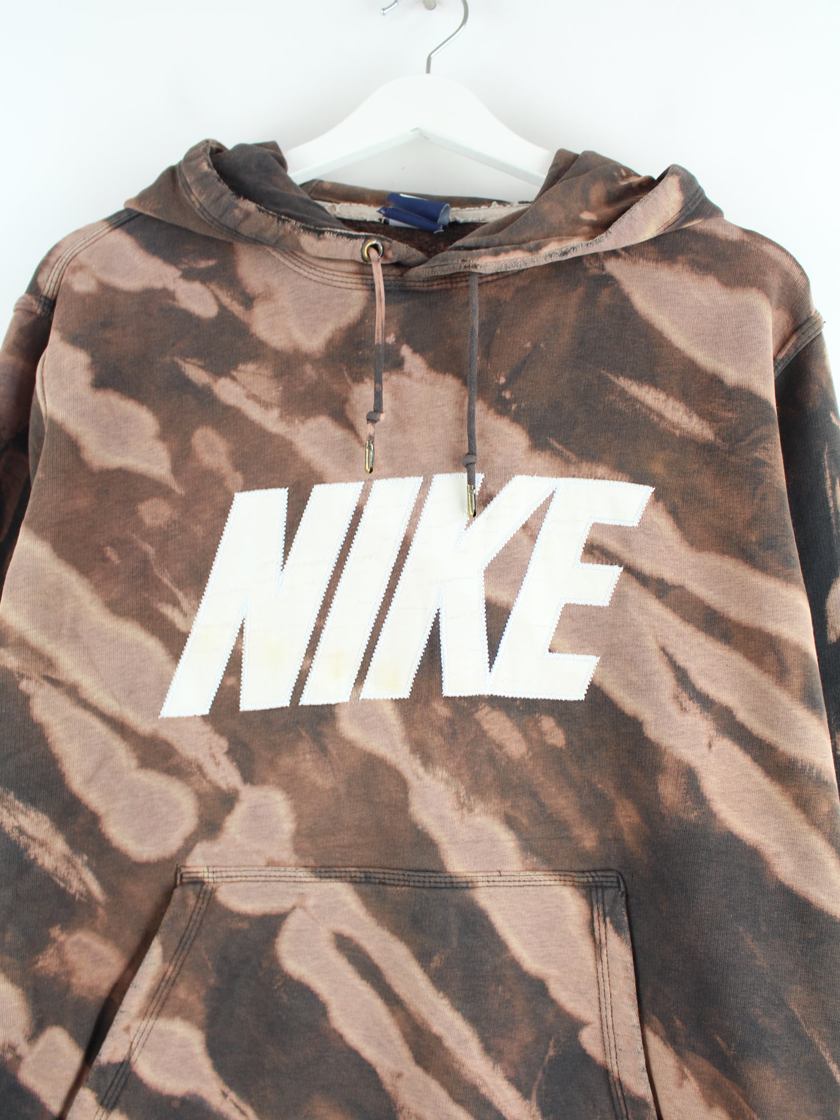 Nike Spellout Embroidered Tie Dye Hoodie Brown L