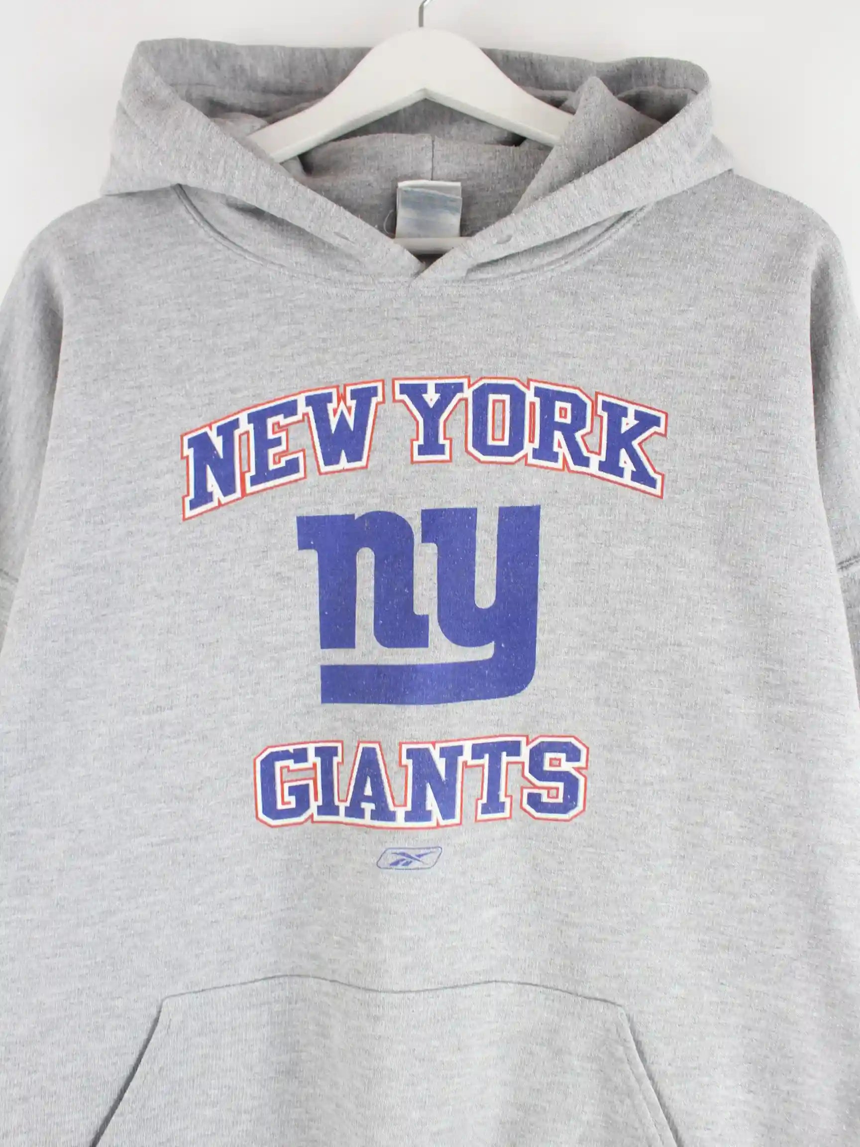 Grauer Hoodie von Reebok in Größe XL. Er ist aus einer Baumwollmischung produziert und in sehr gutem Zustand lieferbar. Mit tollem Giants Print.