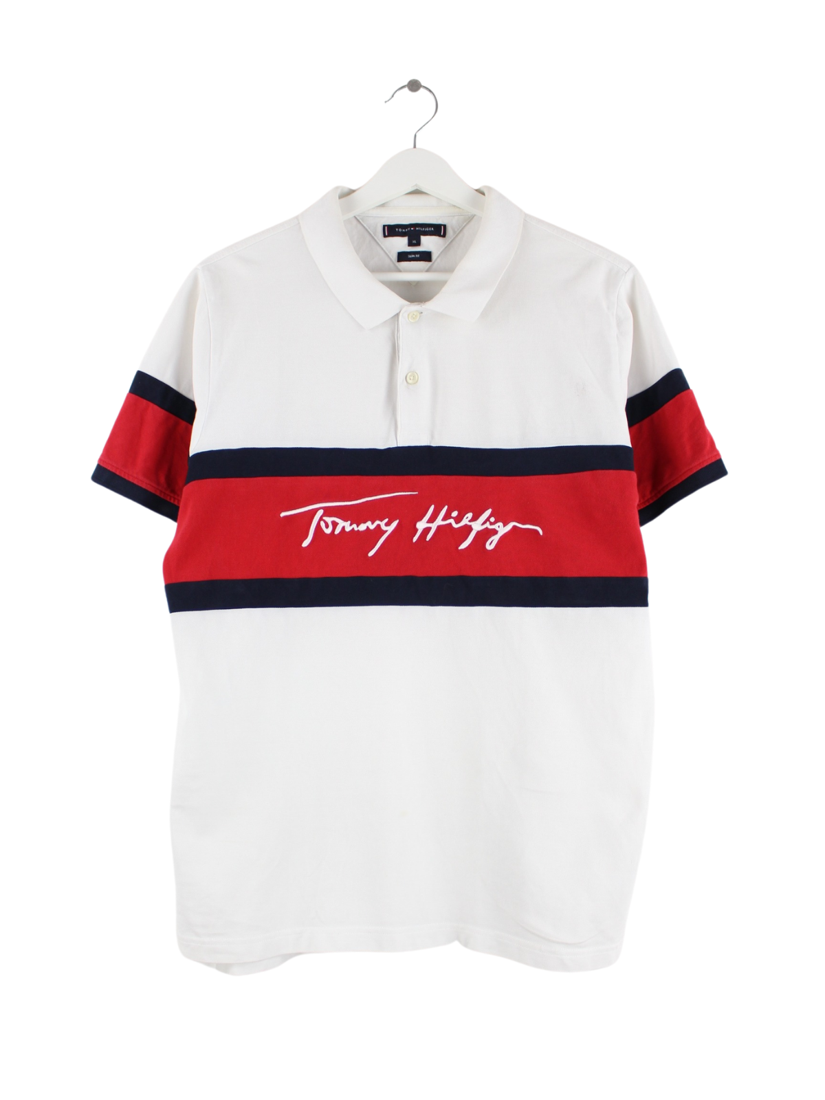 White polo shirt with embroidered logo from Tommy Hilfiger in size M. It is made of cotton and is in good condition.