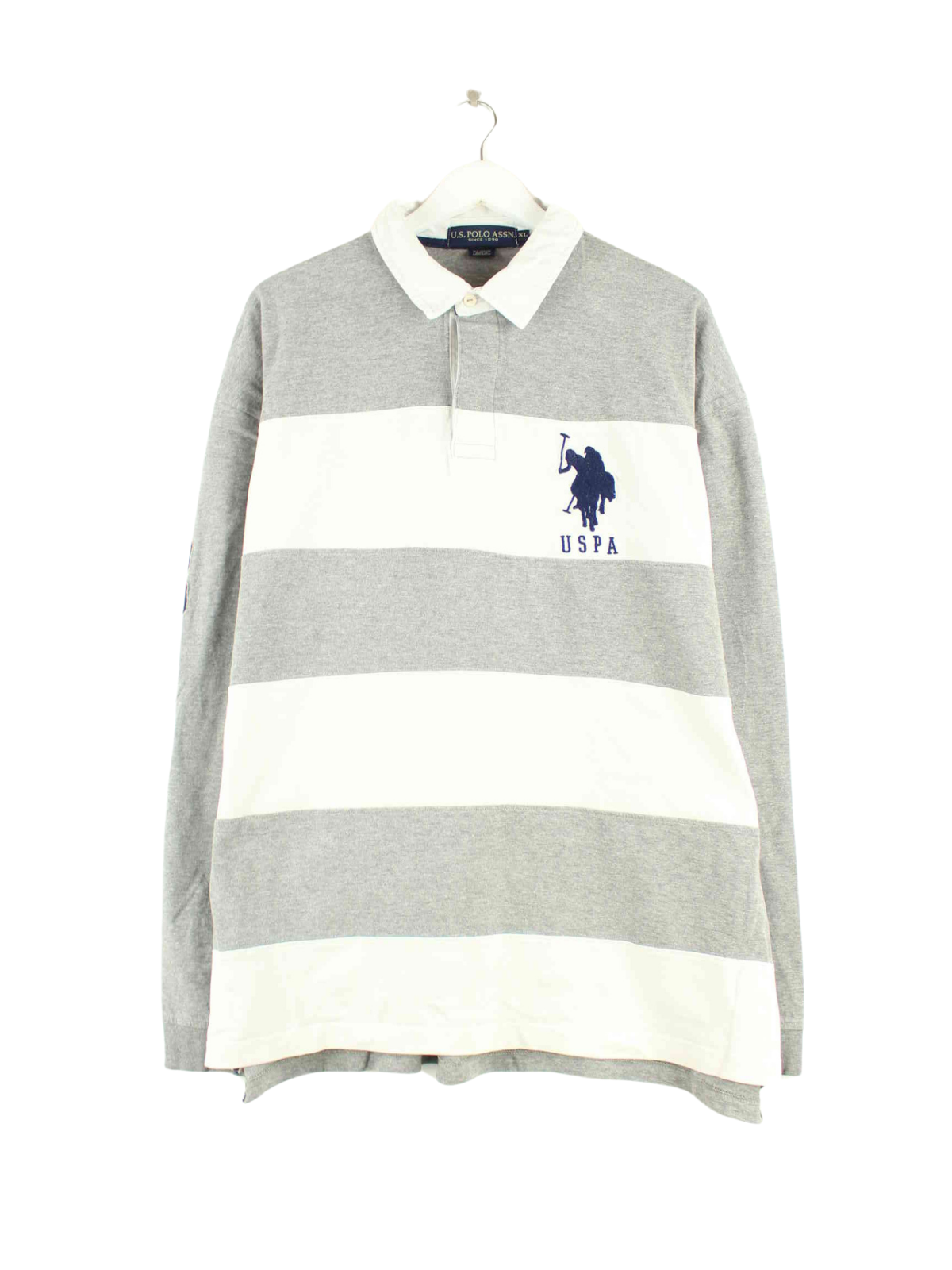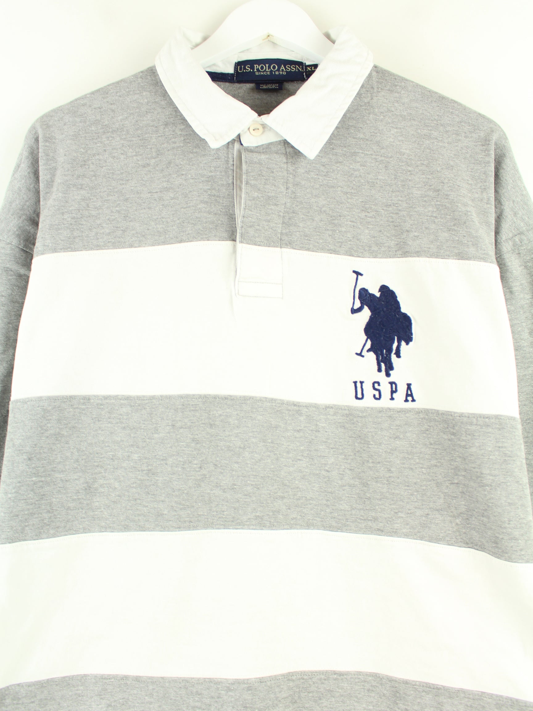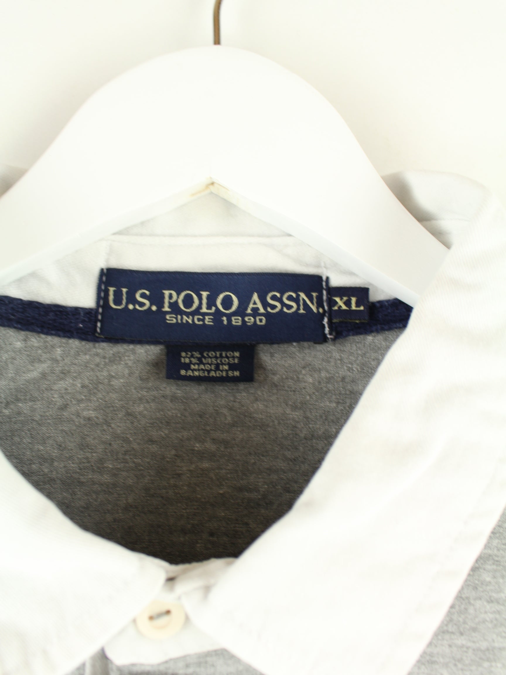 Grey polo shirt with embroidered logo of the brand US Polo ASSN. from the early 2000s in size XL. It is made of cotton and in very good condition in stock.