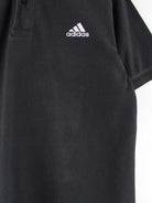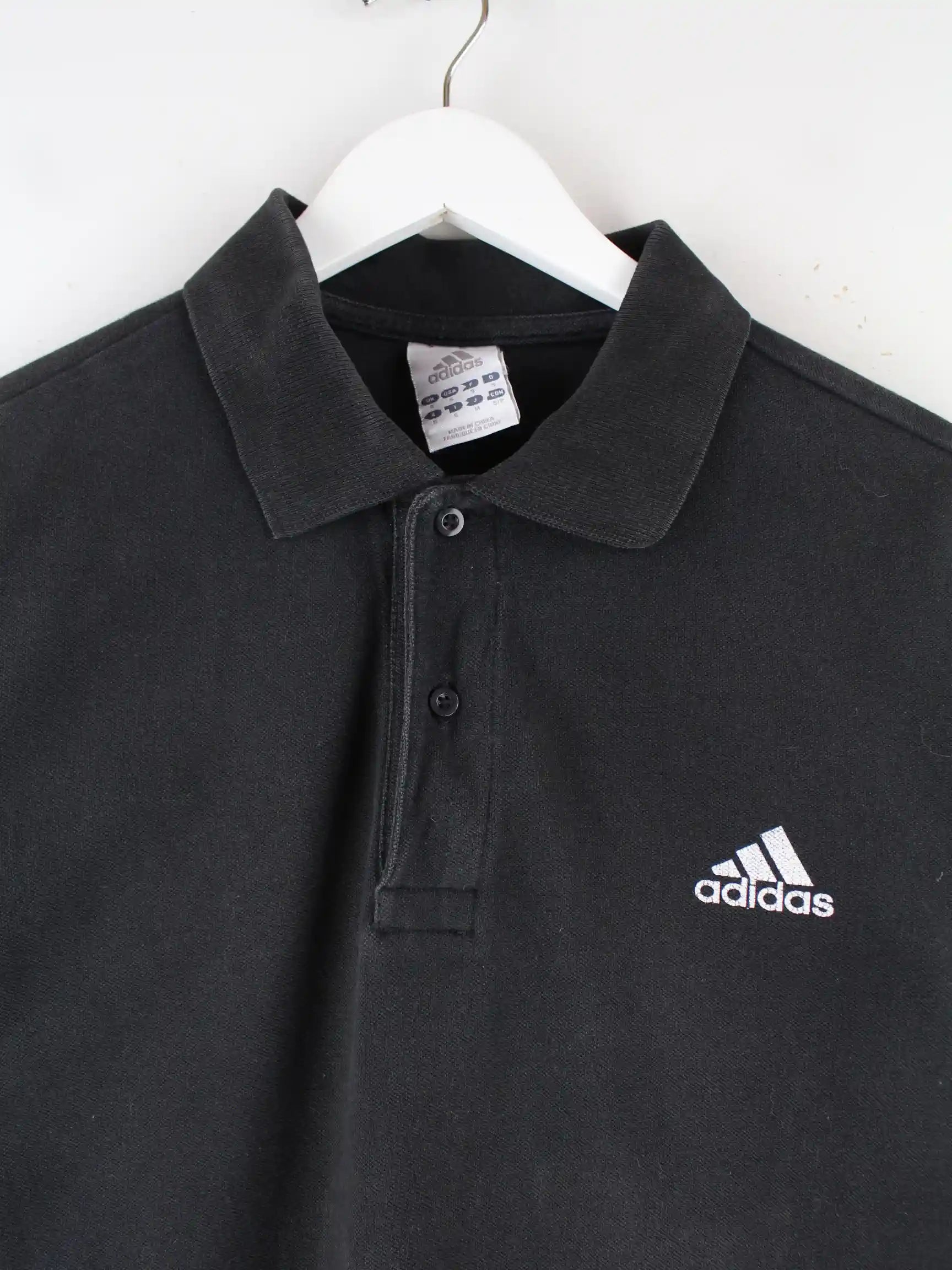 Schwarzes Poloshirt vom Label Adidas in Größe S. Es ist aus Baumwolle gemacht und in gutem Zustand zu bekommen.