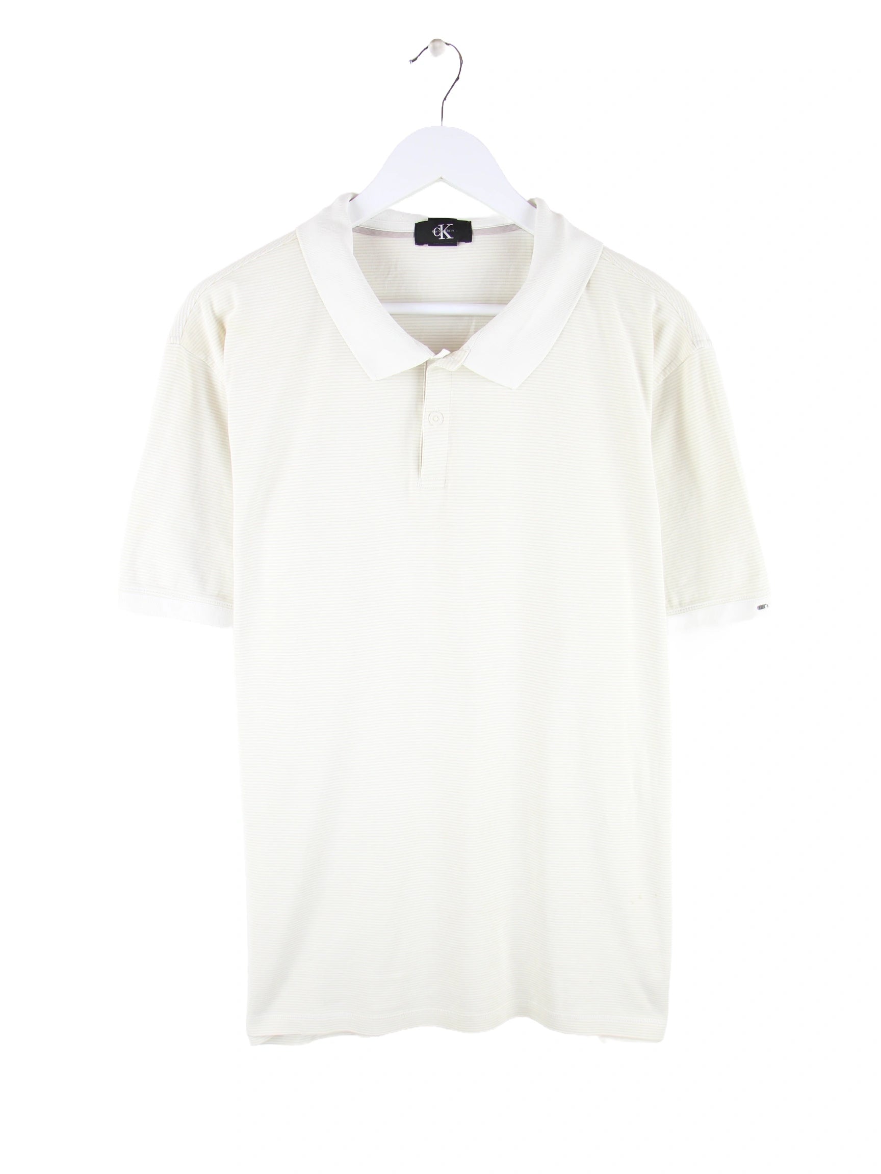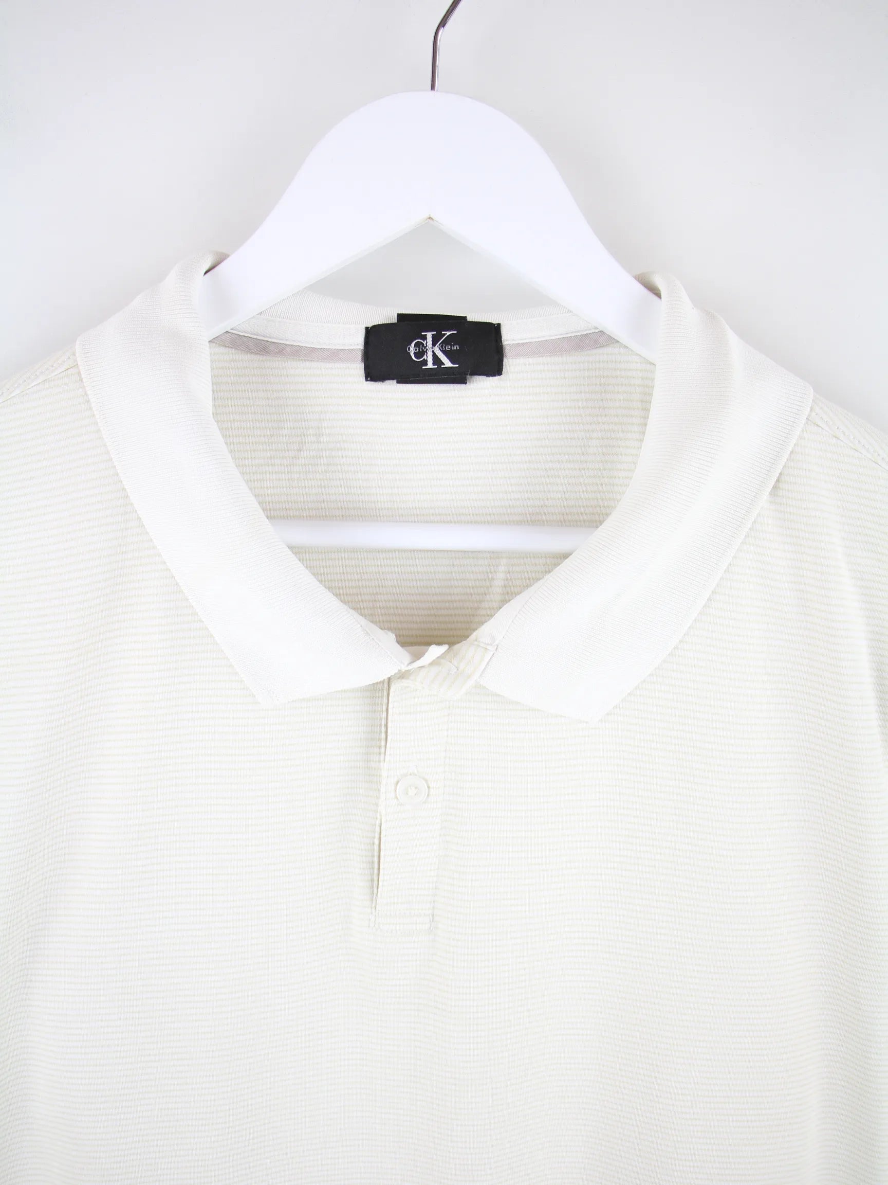 Beigefarbenes Poloshirt von Calvin Klein in Größe XXL. Es ist aus Baumwolle produziert. Den Zustand würden wir als 'In Ordnung' bezeichnen (vergl. Bilder).