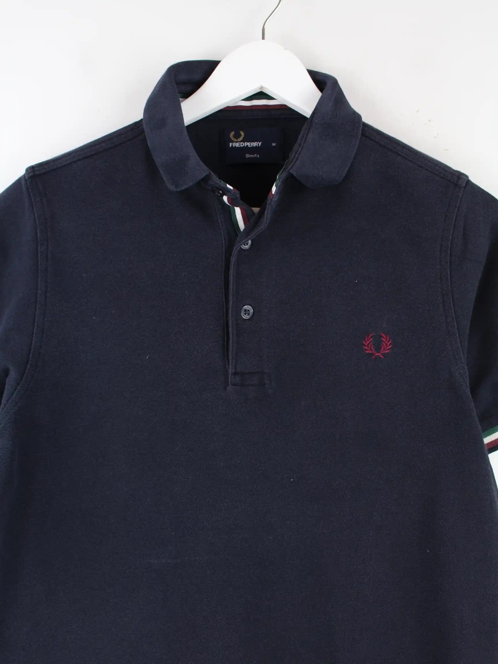 Poloshirt der Marke Fred Perry in Größe M. Es ist aus Baumwolle gefertigt und in Blau bei uns vorrätig.