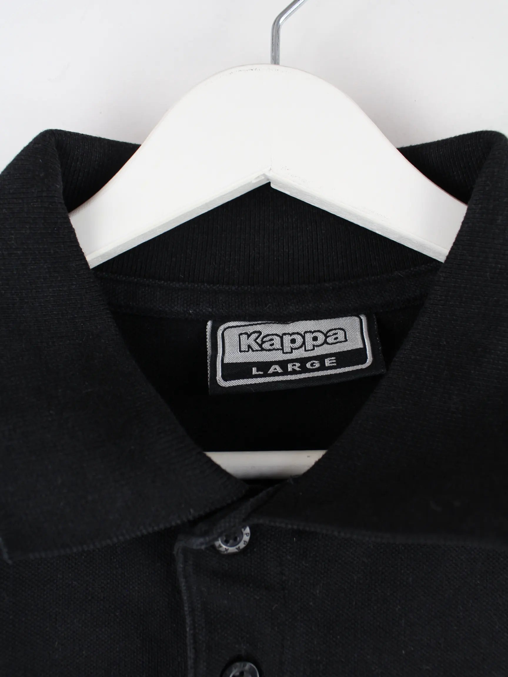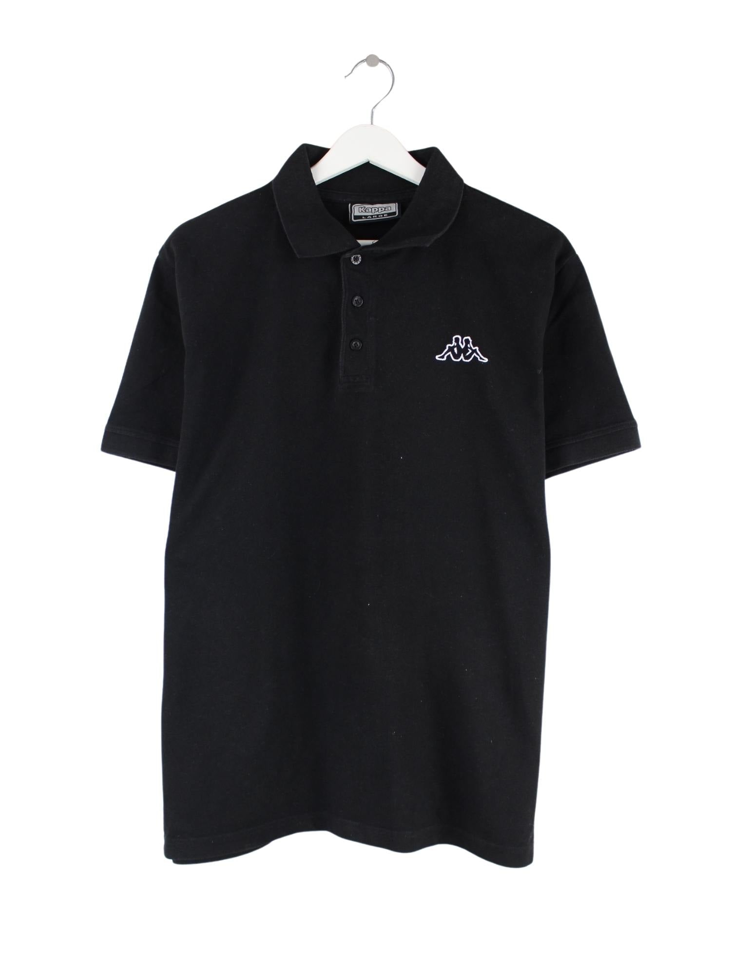 Poloshirt der Marke Kappa in Größe L. Es ist aus einer Baumwollmischung gemacht und in Schwarz bei uns vorrätig.