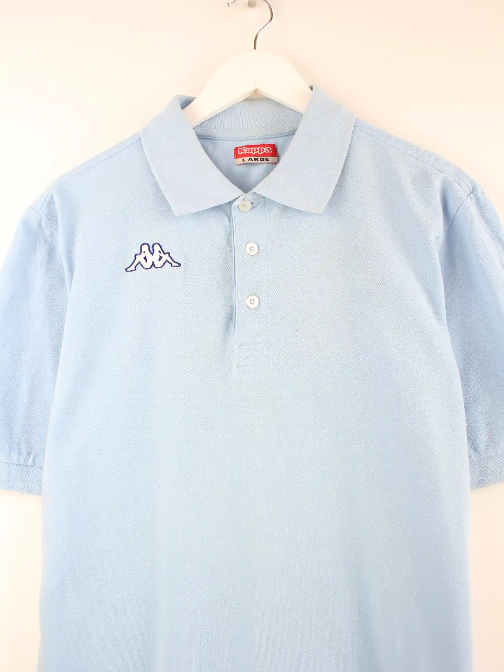 Poloshirt der Marke Kappa in Größe L. Es ist aus Baumwolle gefertigt und in Blau in Stock.