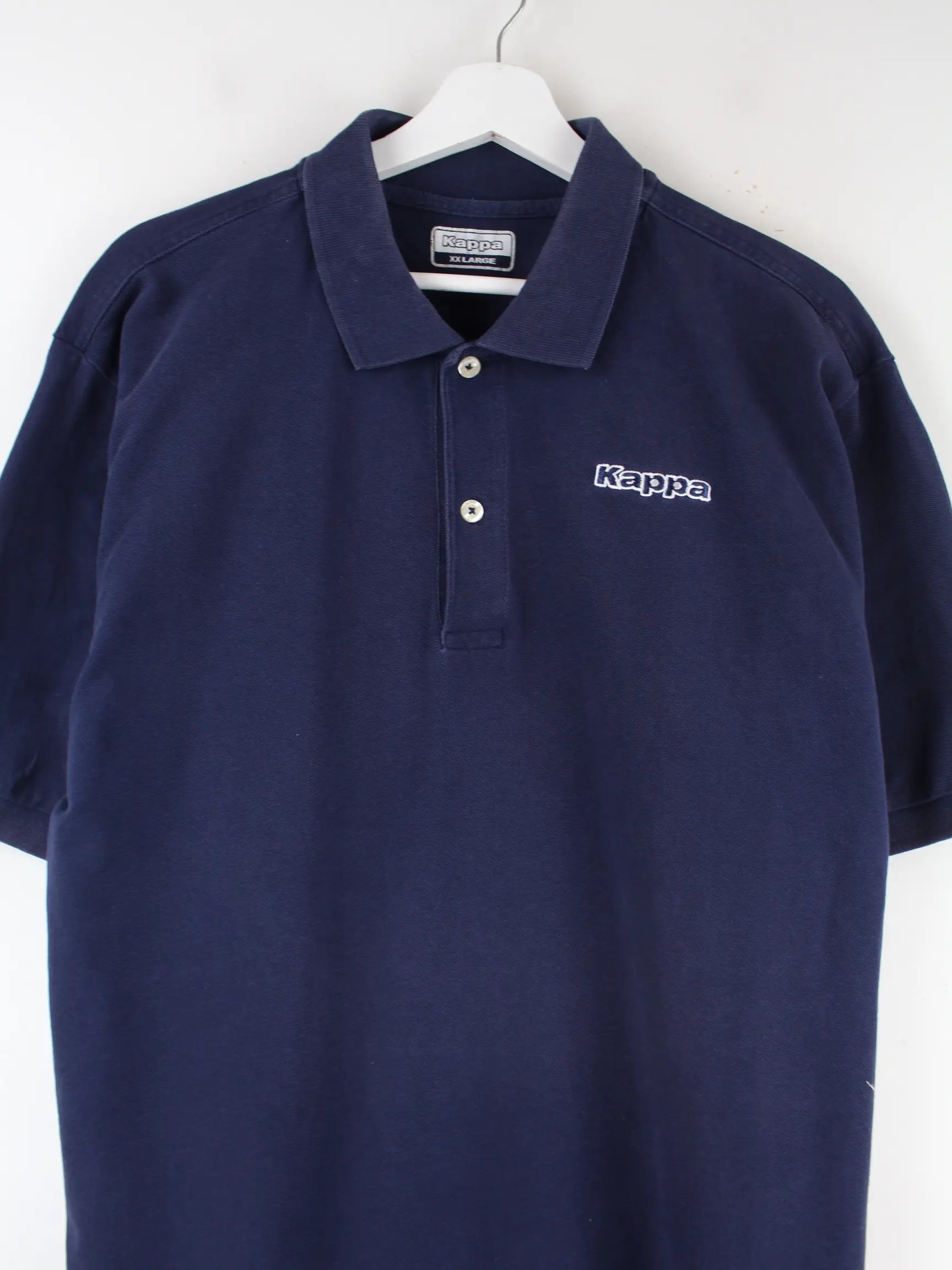 Poloshirt aus dem Hause Kappa in Größe XXL. Es ist aus Baumwolle gemacht und in Blau bei uns vorrätig.