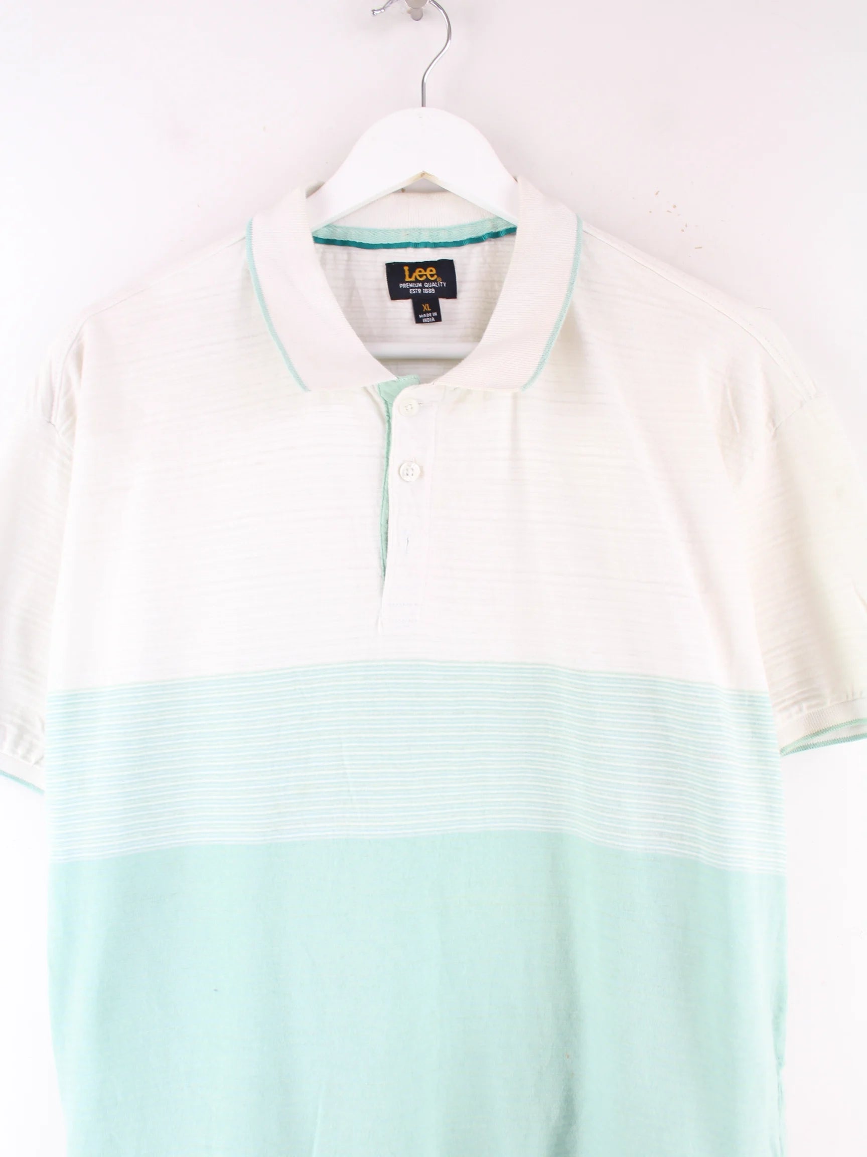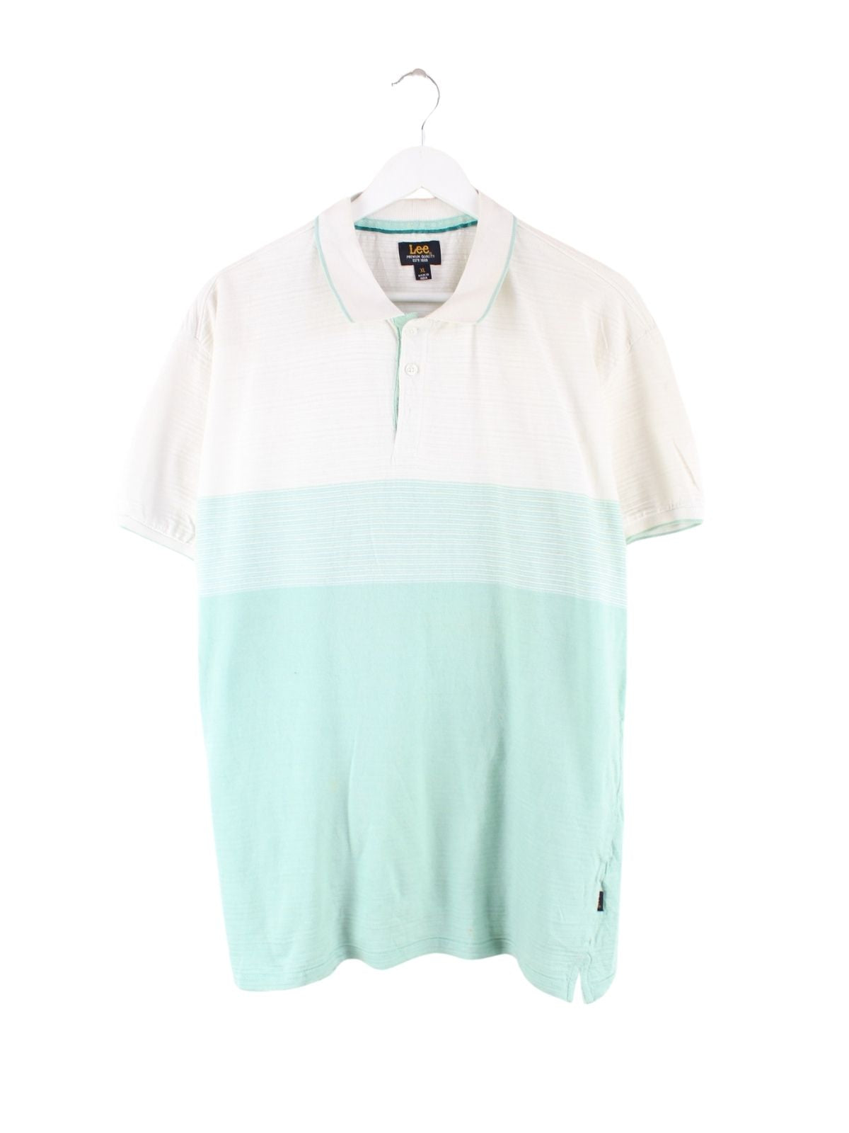 Poloshirt der Marke Lee in Größe XL. Es ist aus Baumwolle hergestellt und in Türkis bei uns vorrätig.