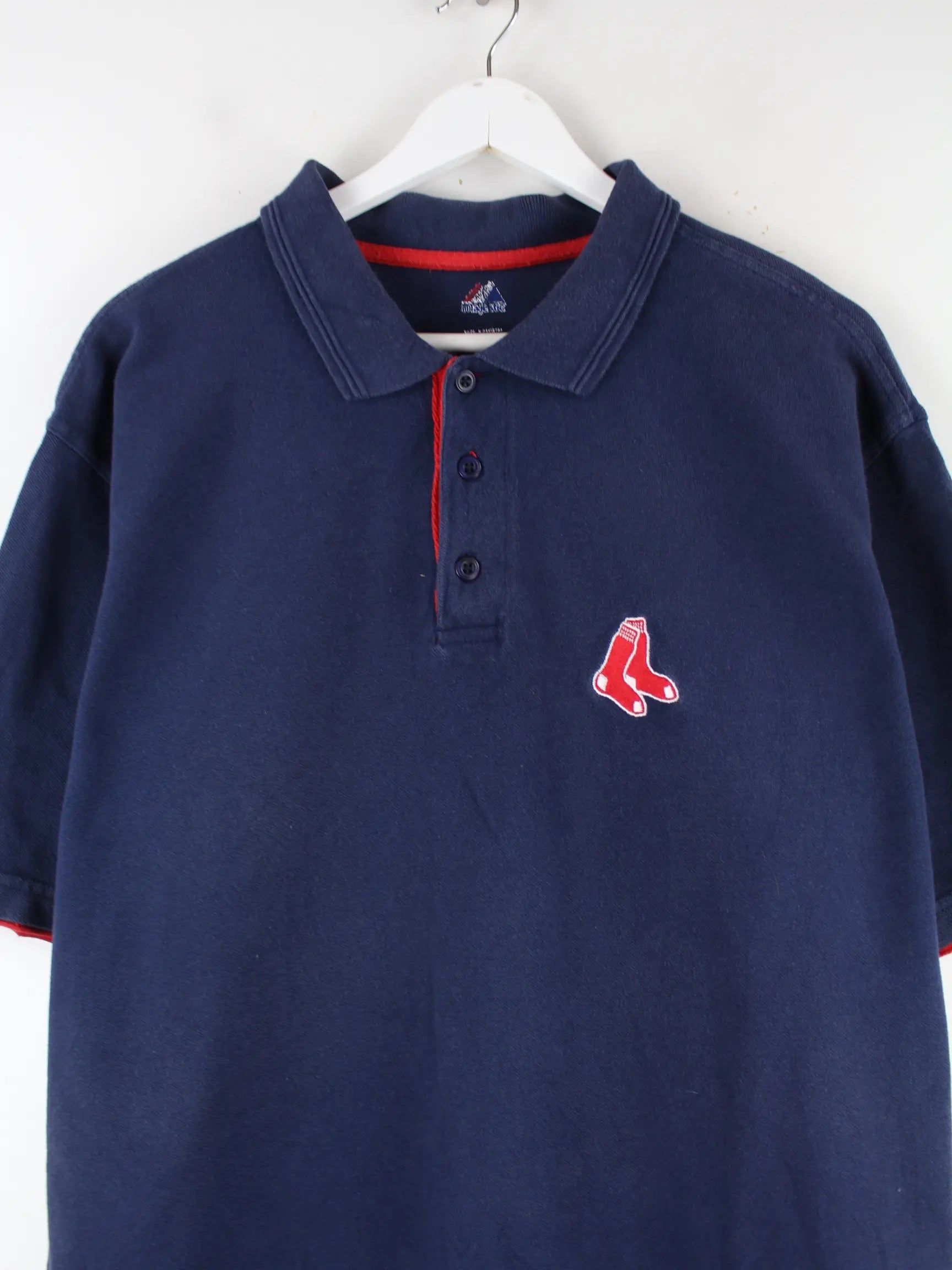 Blaues Poloshirt mit Stick aus dem Hause Majestic in Größe XL. Es ist aus Baumwolle . Den Zustand würden wir als 'In Ordnung' bezeichnen (vergl. Bilder).