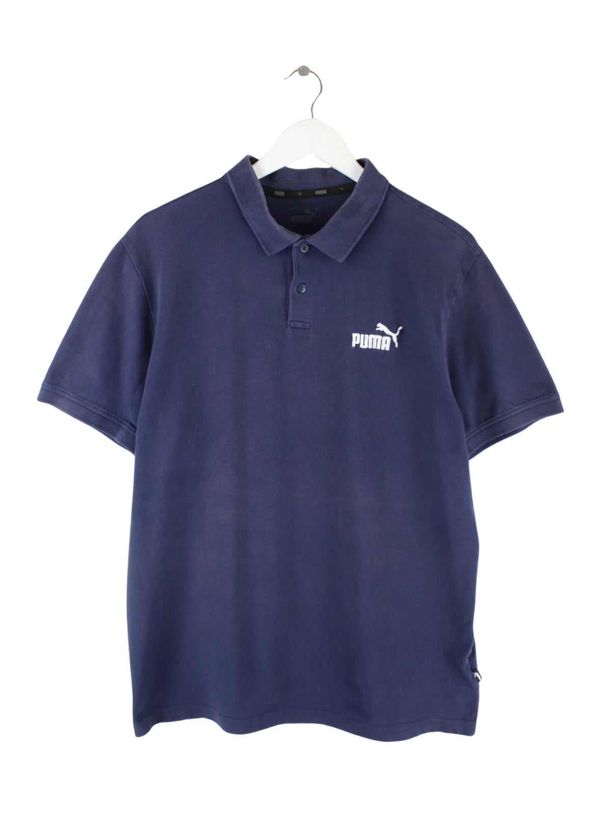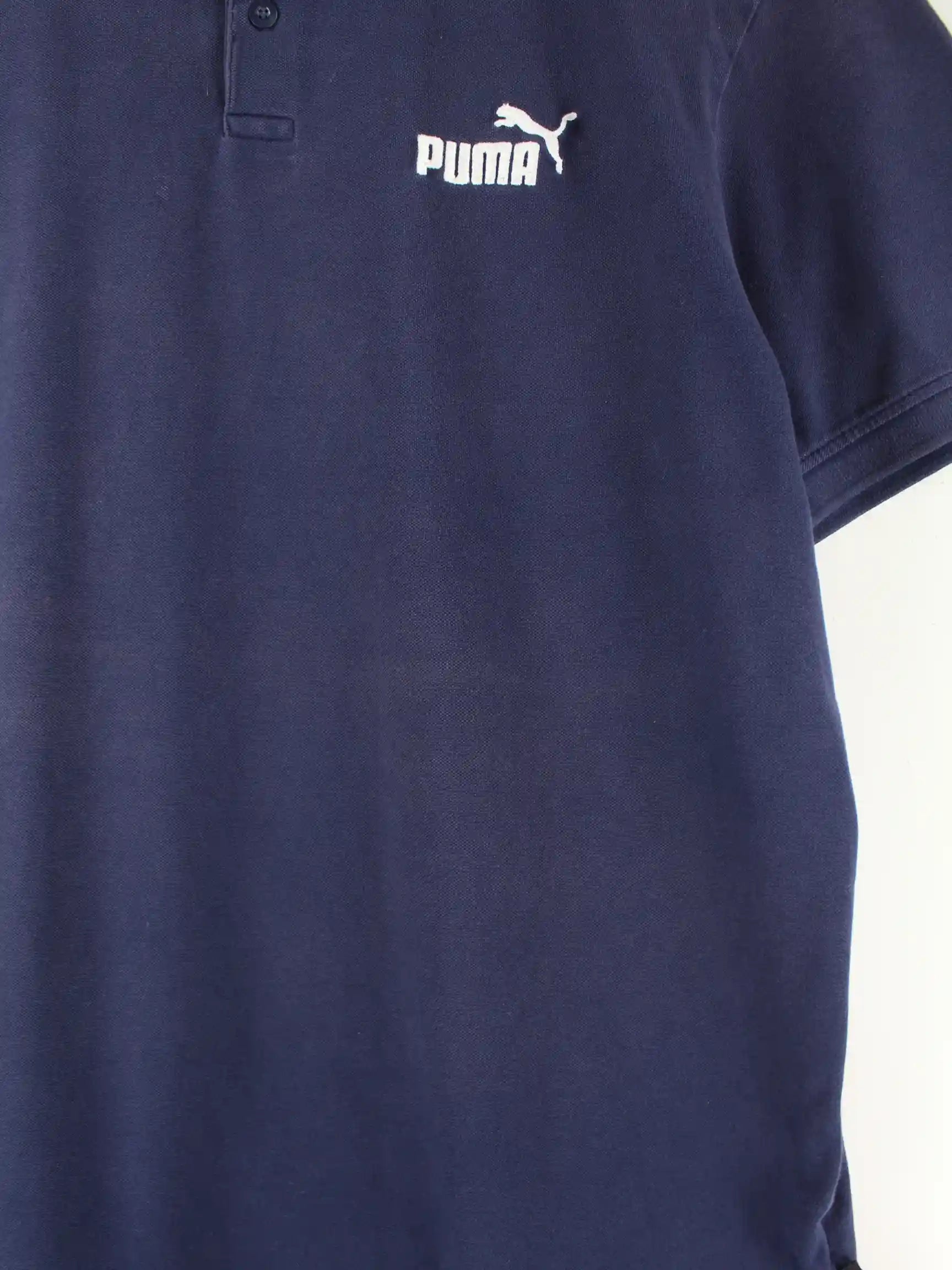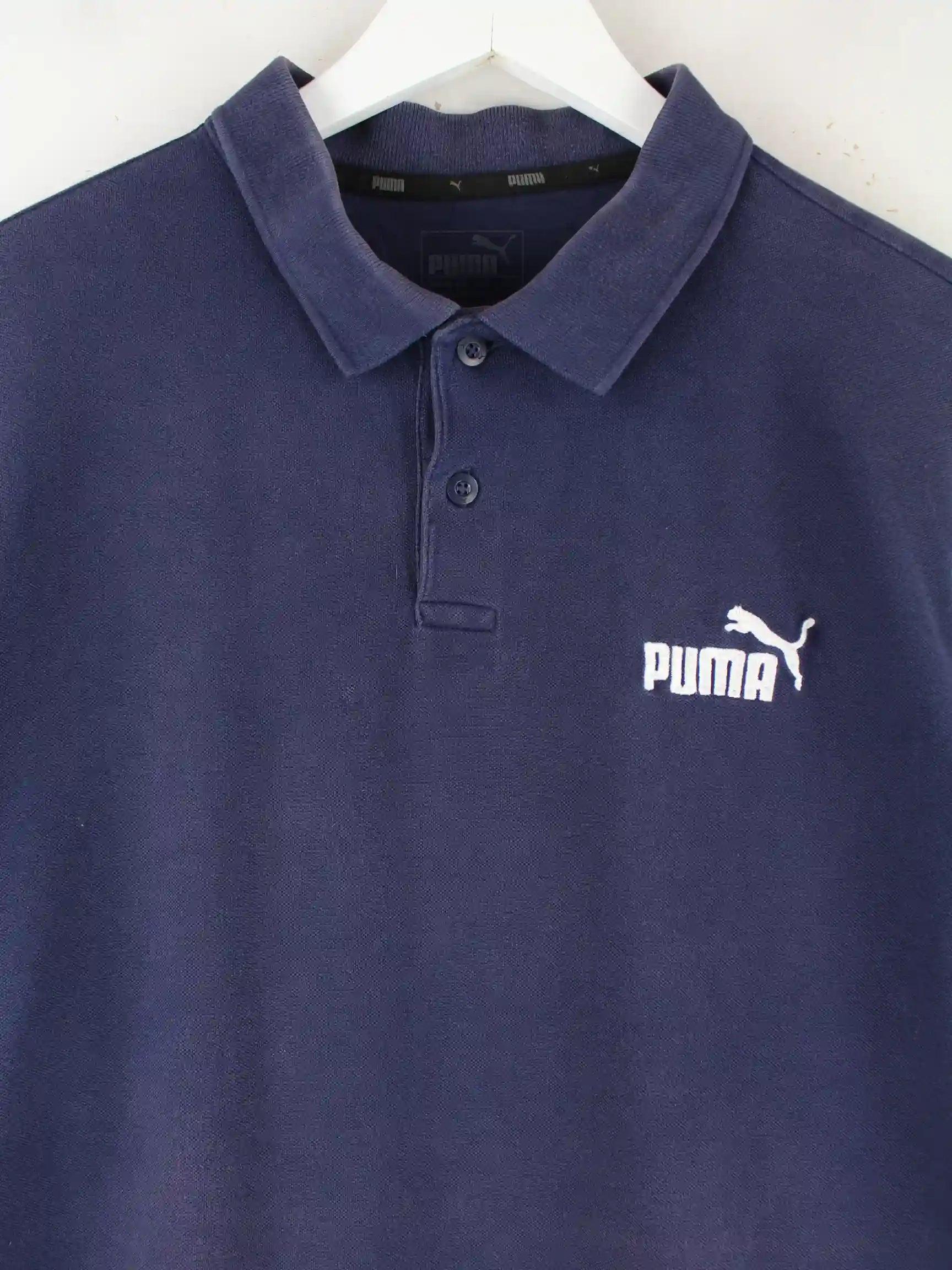 Blaues Poloshirt der Marke Puma in Größe L. Es ist aus Baumwolle gefertigt und in gutem Zustand auf Lager.
