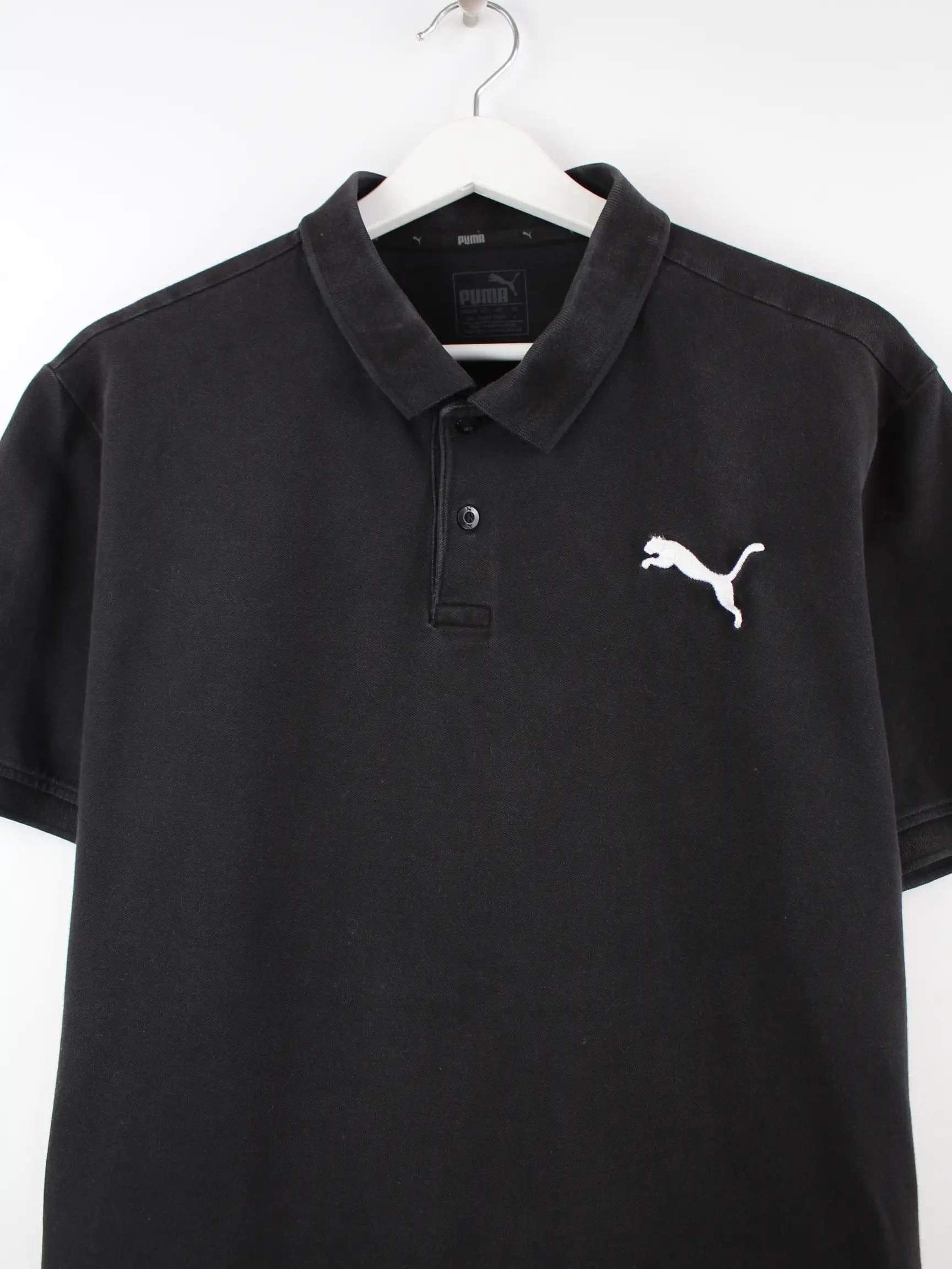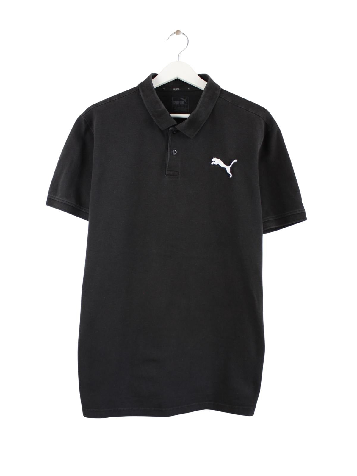 Schwarzes Poloshirt vom Label Puma in Größe L. Es ist aus Baumwolle hergestellt und in gutem Zustand auf Lager.
