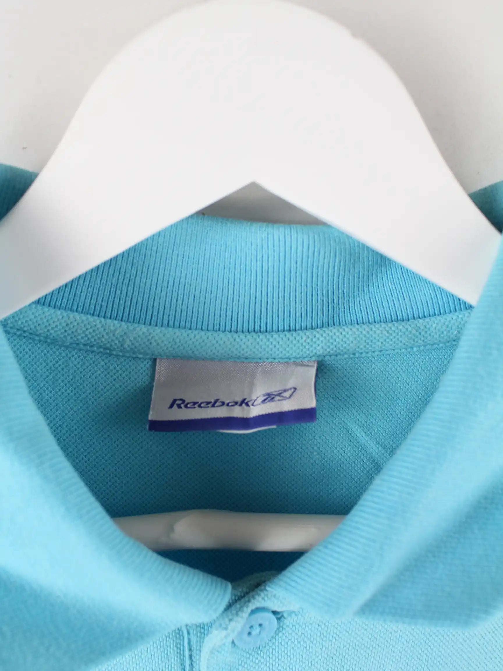 Poloshirt der Brand Reebok in Größe S. Es ist aus Baumwolle hergestellt und in Blau zu bekommen.