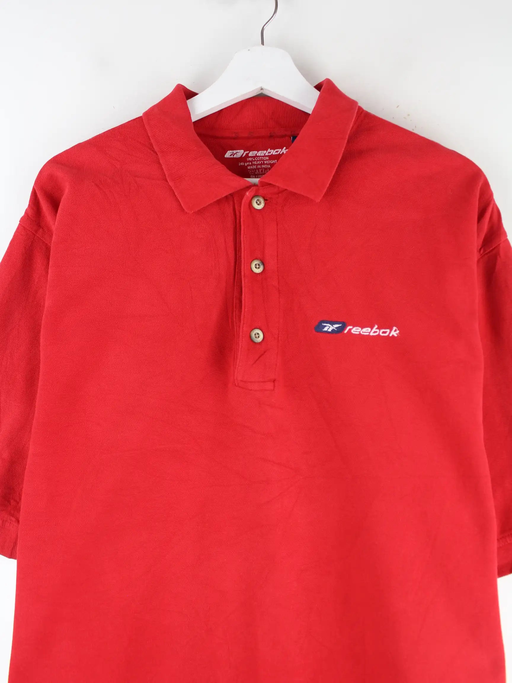 Rotes Poloshirt des Labels Reebok in Größe L. Es ist aus Baumwolle produziert und in sehr gutem Zustand vorrätig.