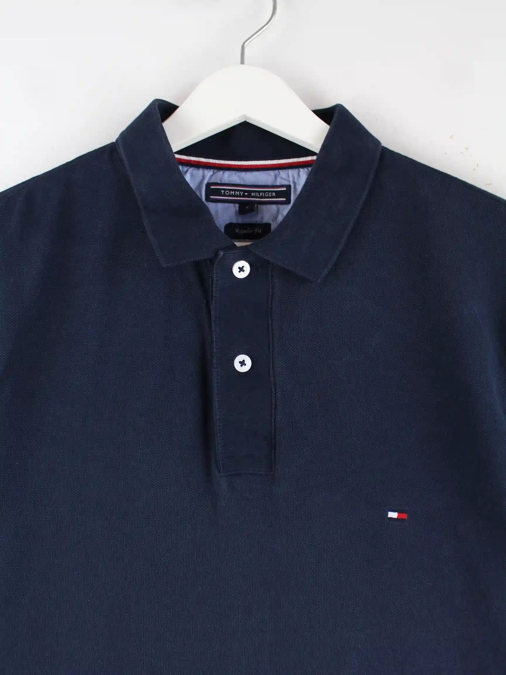 Poloshirt aus dem Hause Tommy Hilfiger in Größe S. Es ist aus Baumwolle gemacht und in Blau vorrätig.