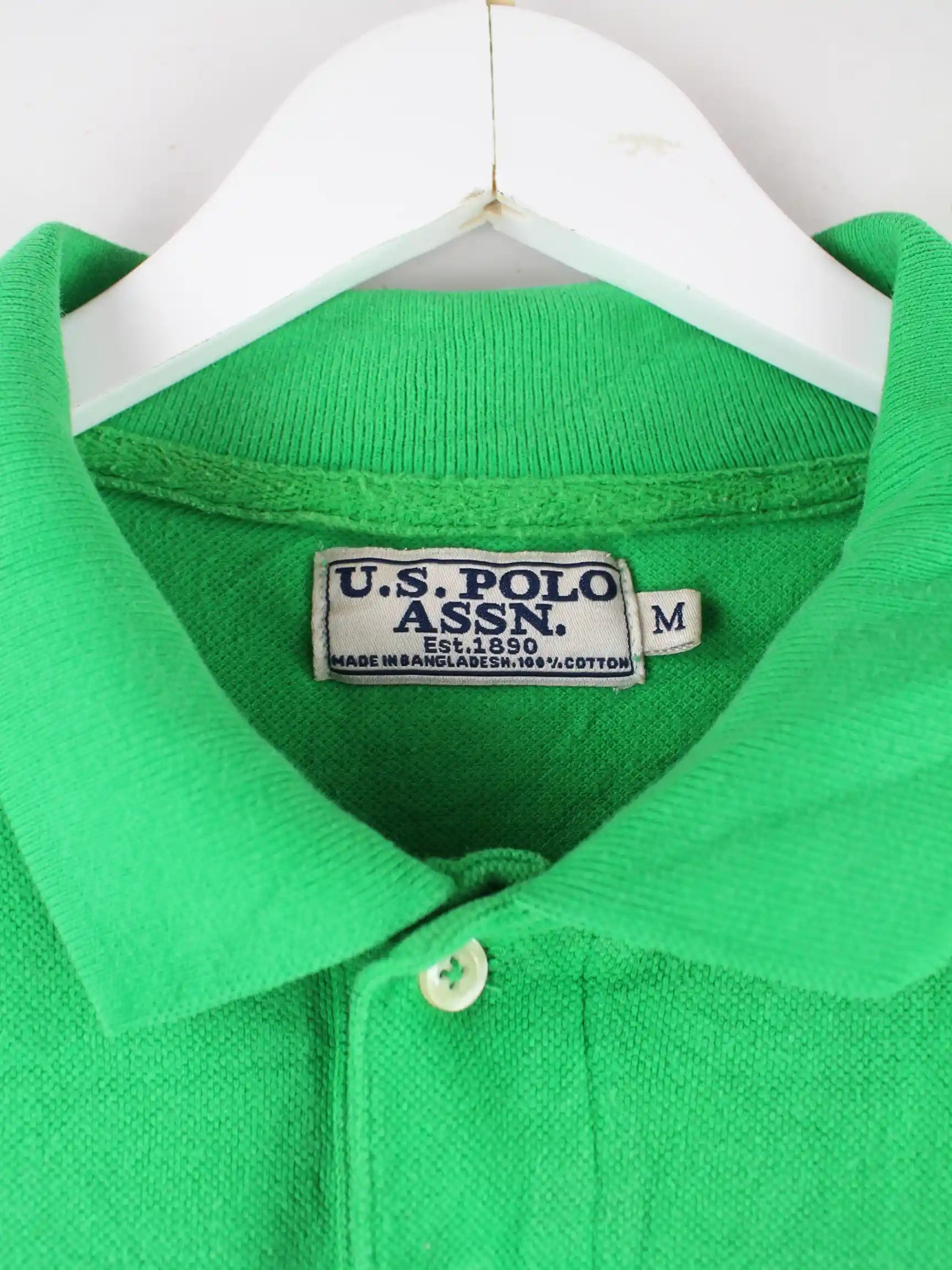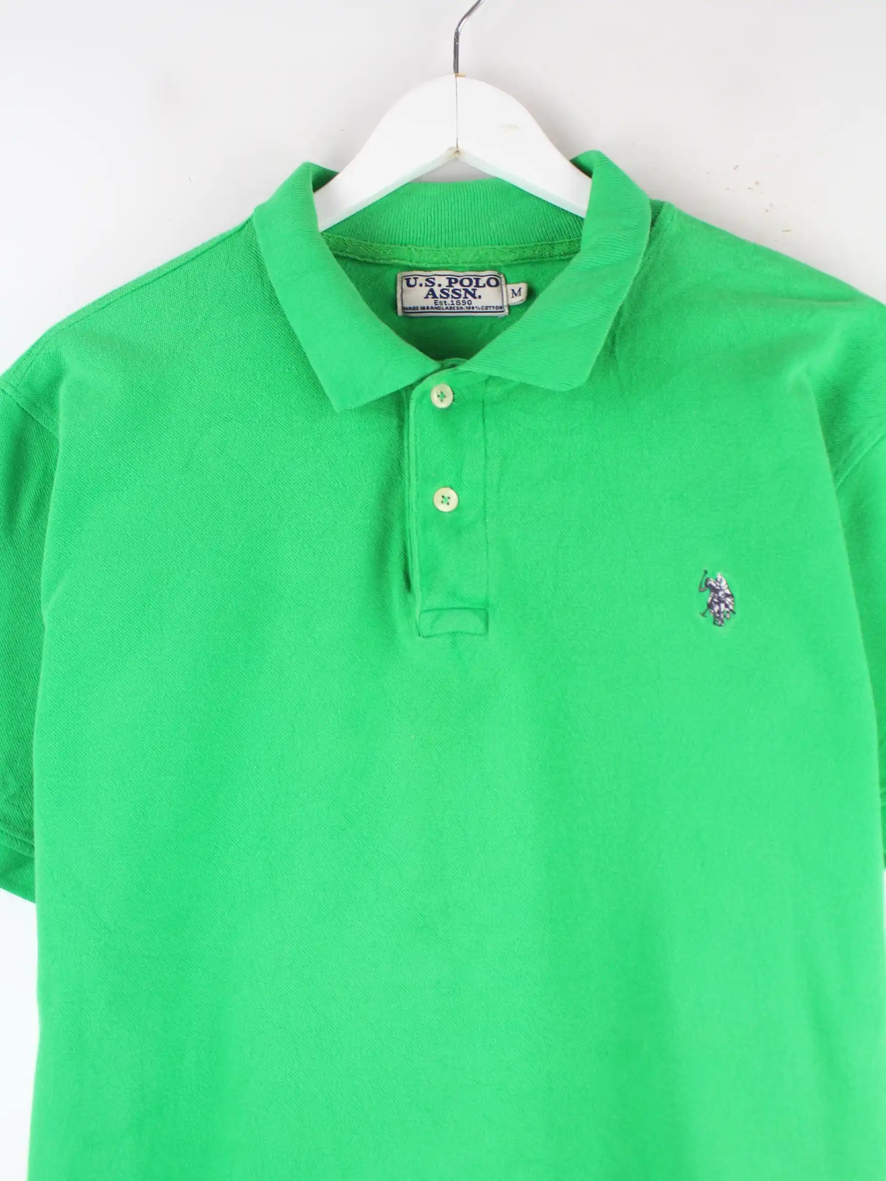 Grünes Poloshirt vom Label U.S. Polo ASSN. in Größe M. Es ist aus Baumwolle hergestellt und in gutem Zustand auf Lager.