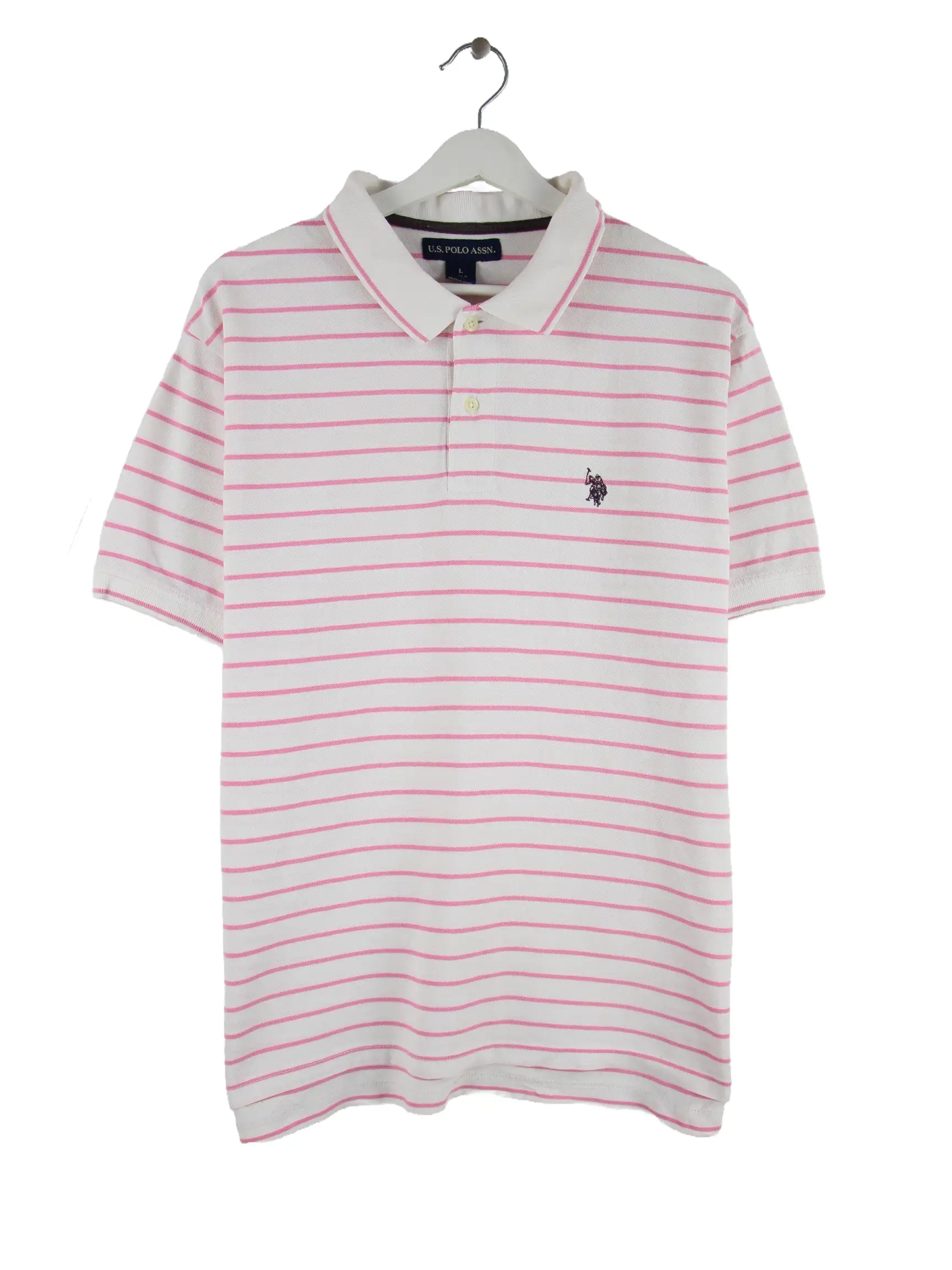 Weißes Poloshirt des Labels U.S. Polo ASSN. in Größe L. Es ist aus Baumwolle gemacht und in sehr gutem Zustand bei uns zu bekommen.