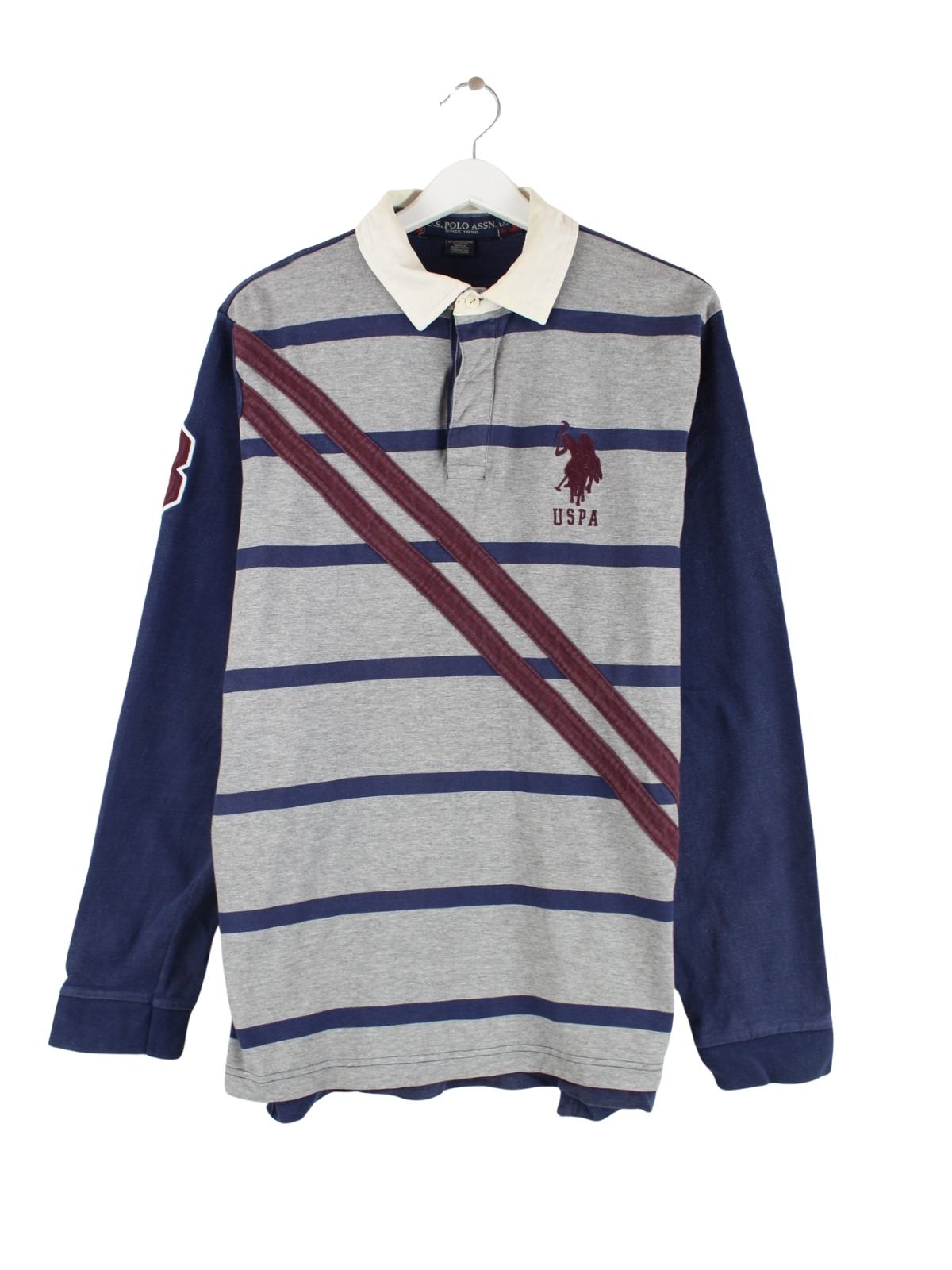 U.S. Polo ASSN. Striped Langarm Polo Grau L