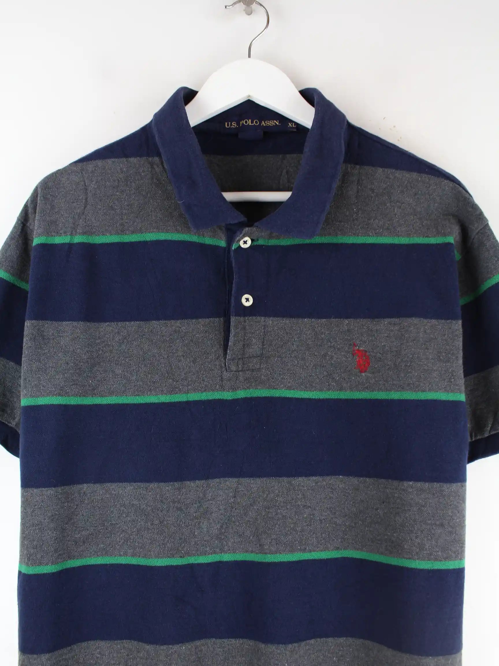 Poloshirt des Labels U.S. Polo ASSN. in Größe XL. Es ist aus Baumwolle produziert und in Blau bei uns vorrätig.