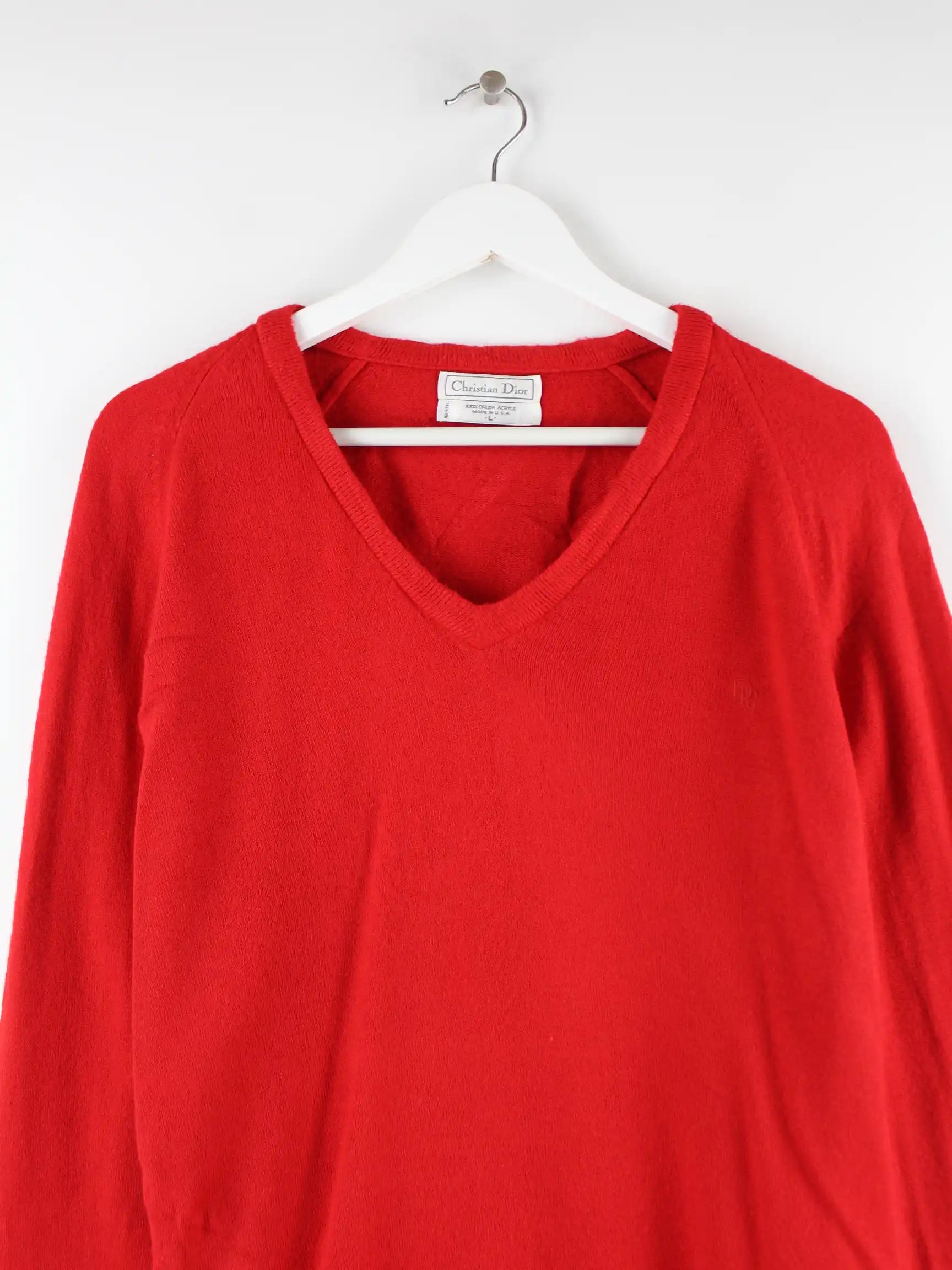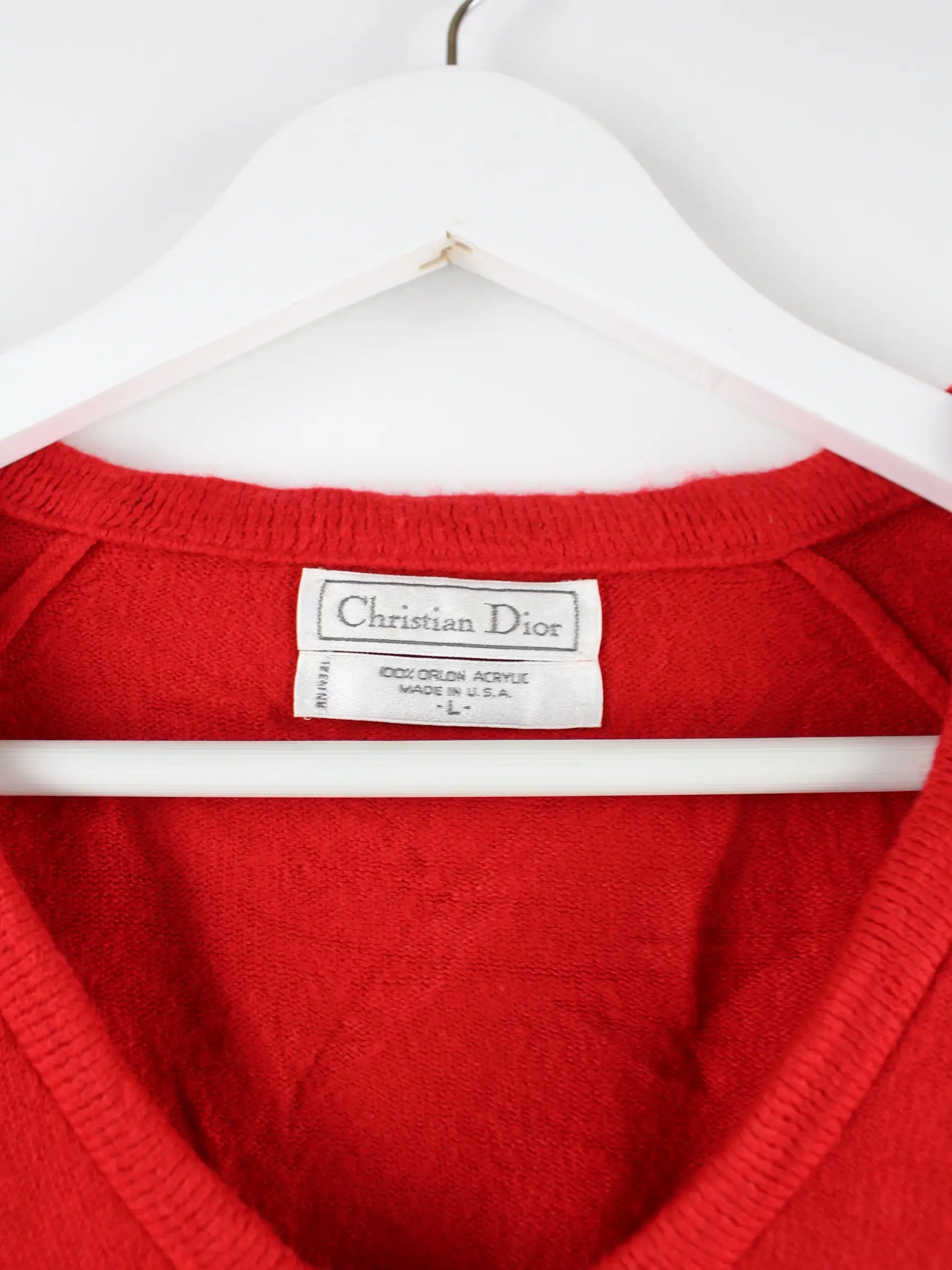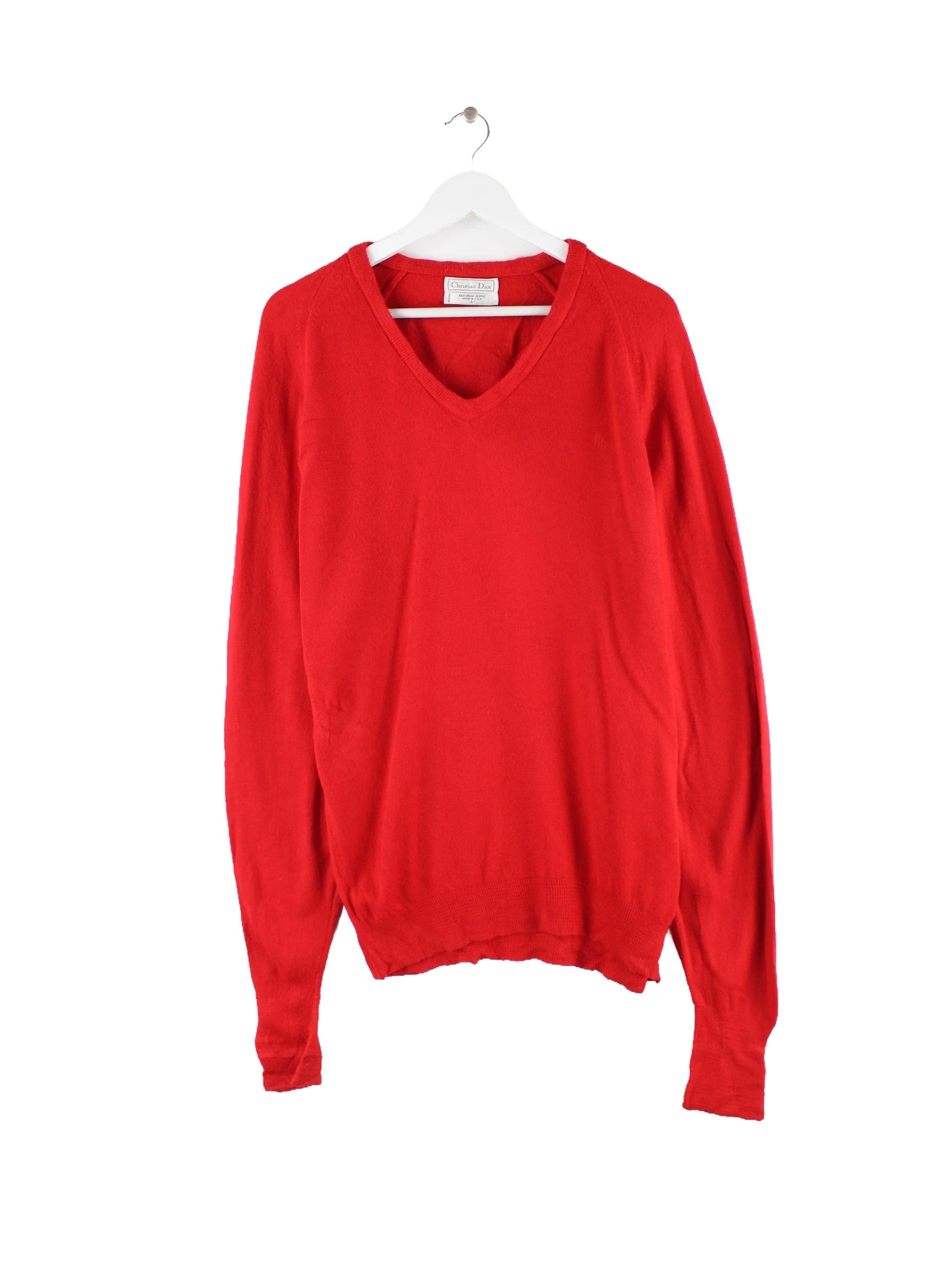 Christian Dior 90s Vintage V-Neck Pullover Rot L