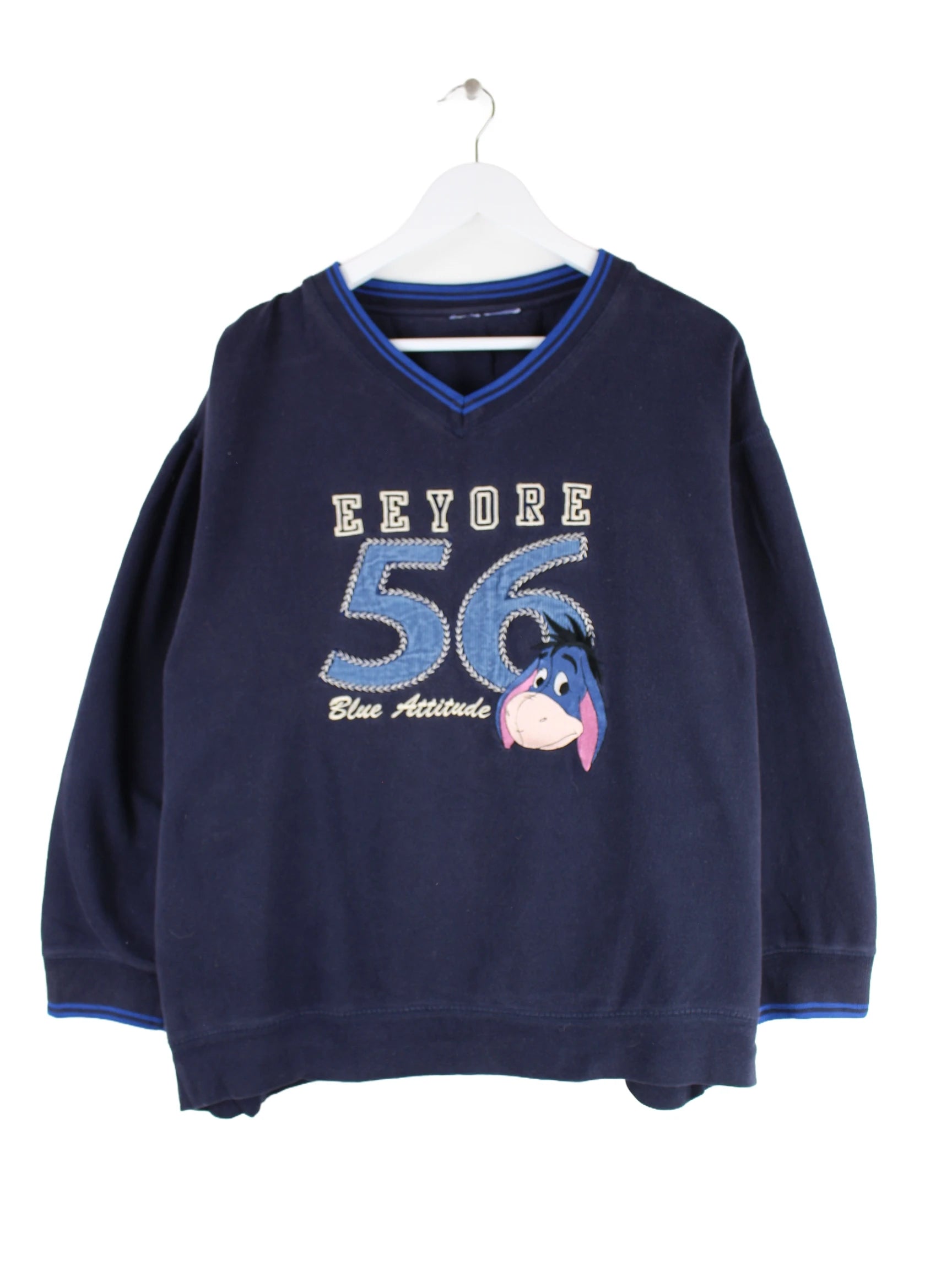 Disney Damen 00s Eeyore V-Neck Sweater Blau L
