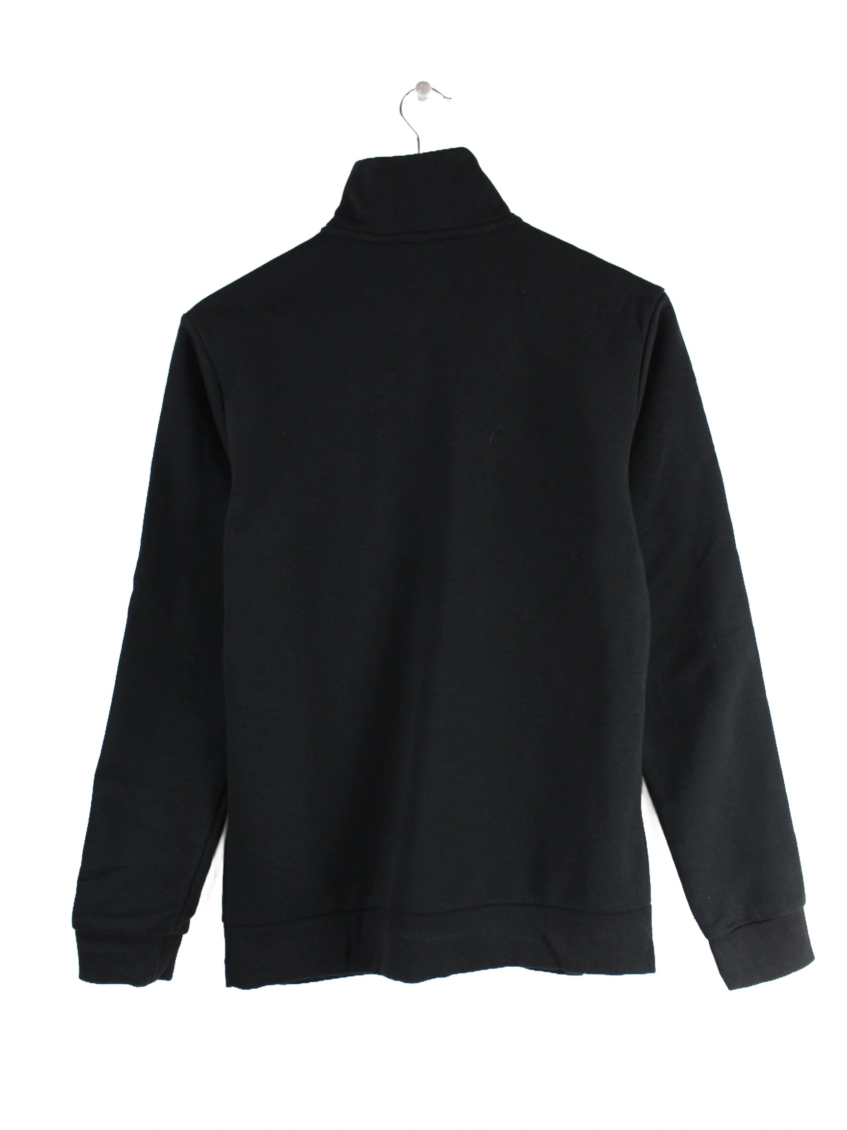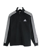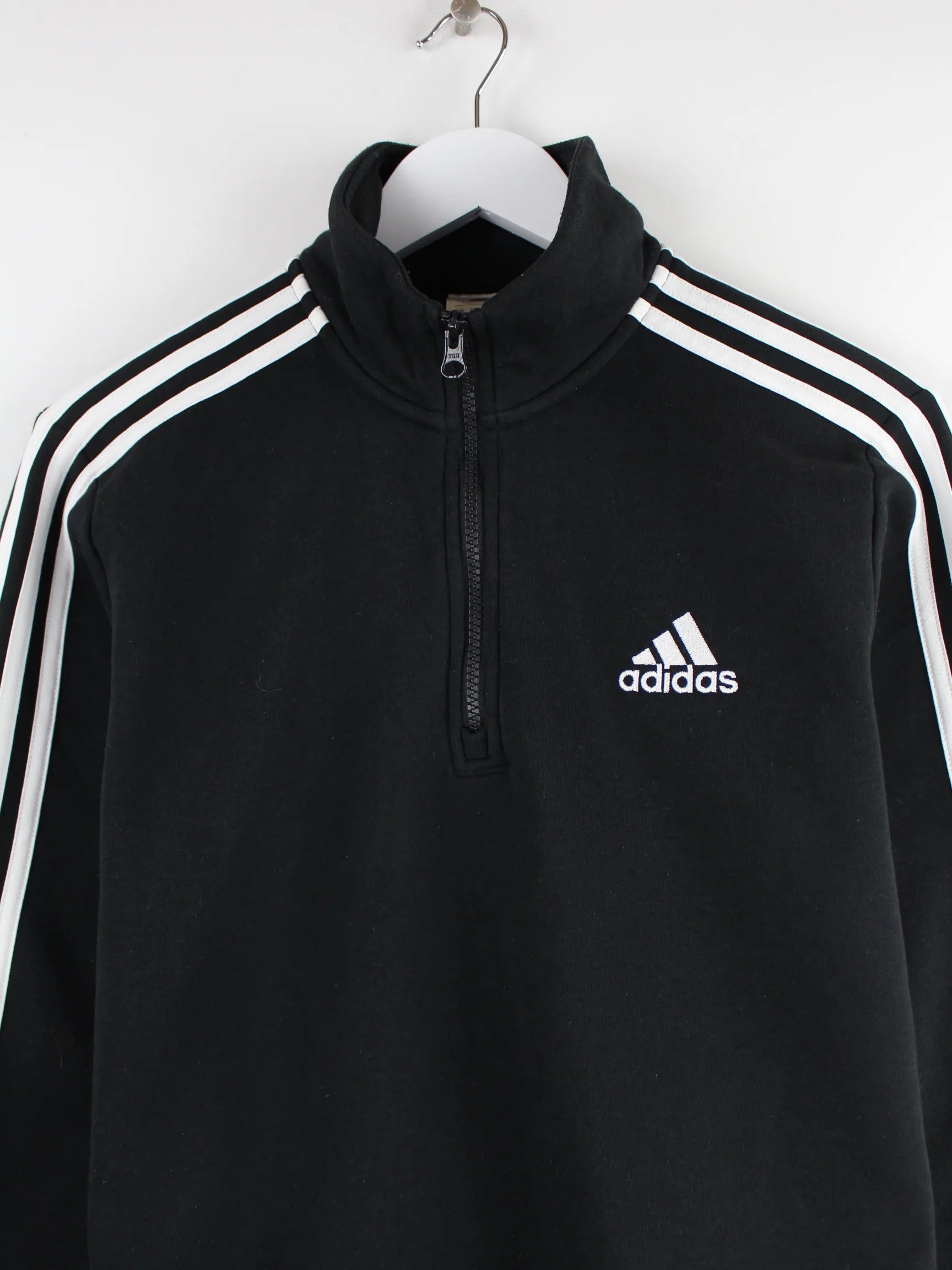 Schwarzer Sweater mit kurzem Reißverschluß von Adidas in Größe M. Er ist aus einer Baumwollmischung und in sehr gutem Zustand zu haben.
