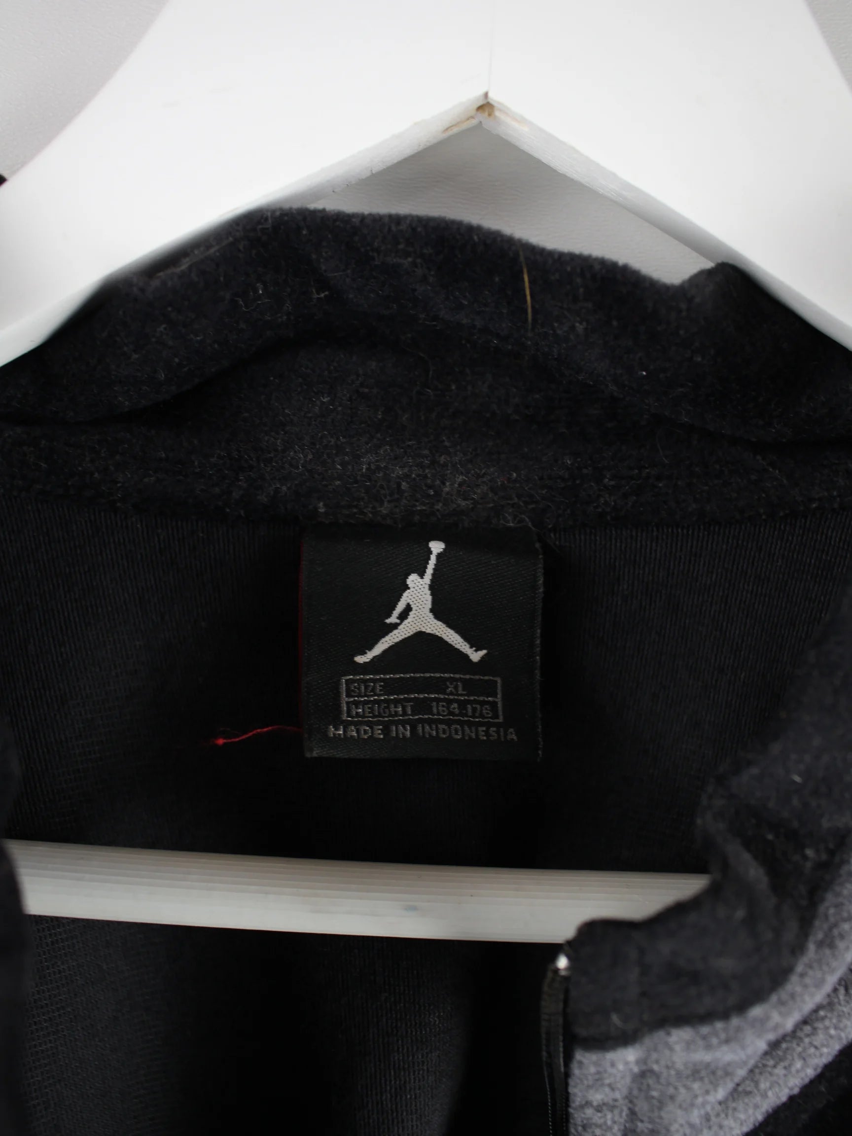 Schwarzer Sweater mit halbem Reißverschluß vom Label Jordan in Größe S. Er ist aus angenehmem Fleece . Den Zustand würden wir als 'In Ordnung' bezeichnen (vergl. Bilder).