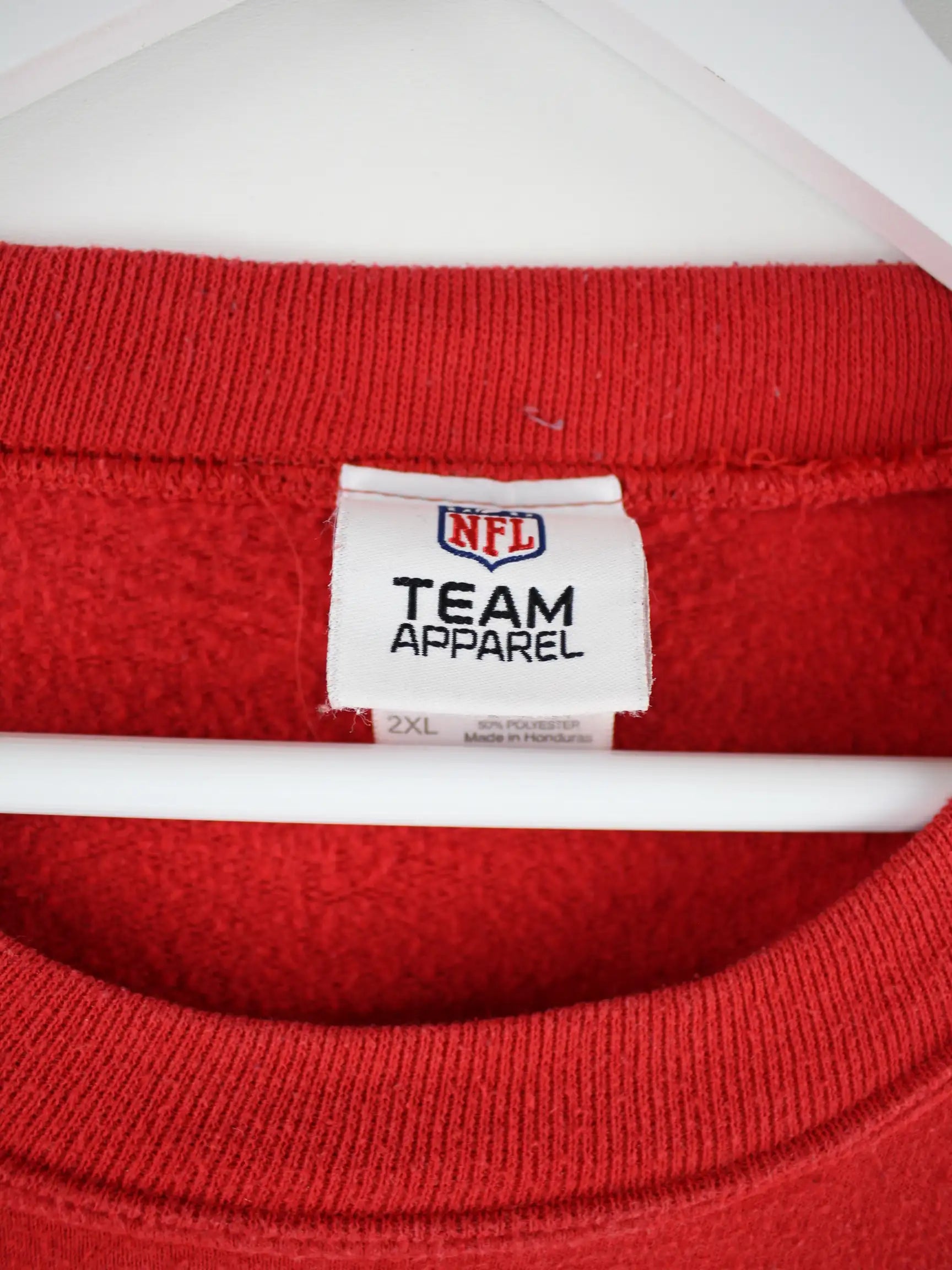 Sweater vom Label NFL in Größe XXL. Er ist aus einer Baumwollmischung gefertigt und in Rot bei uns vorrätig. Mit chiquem Giants Print.