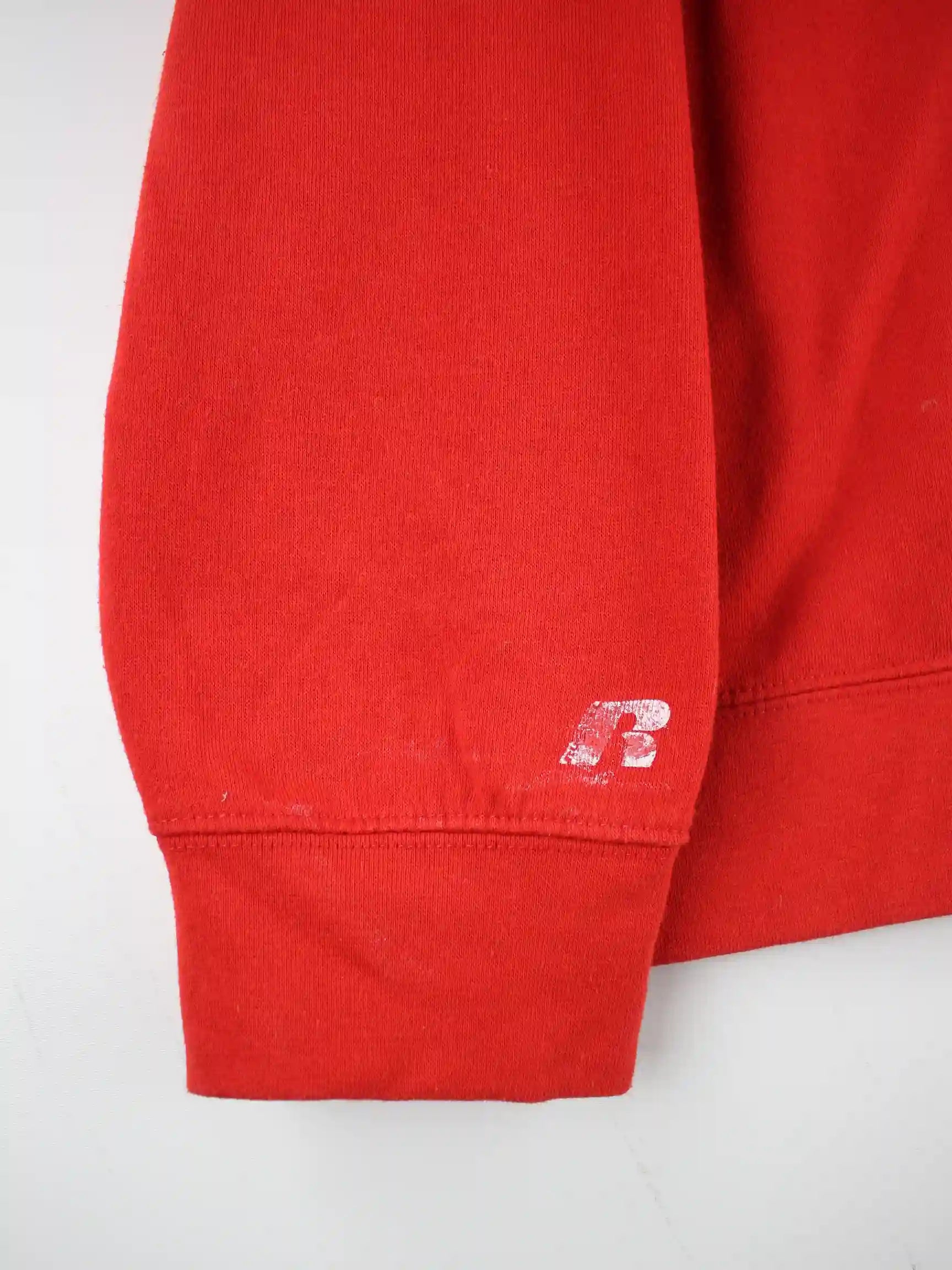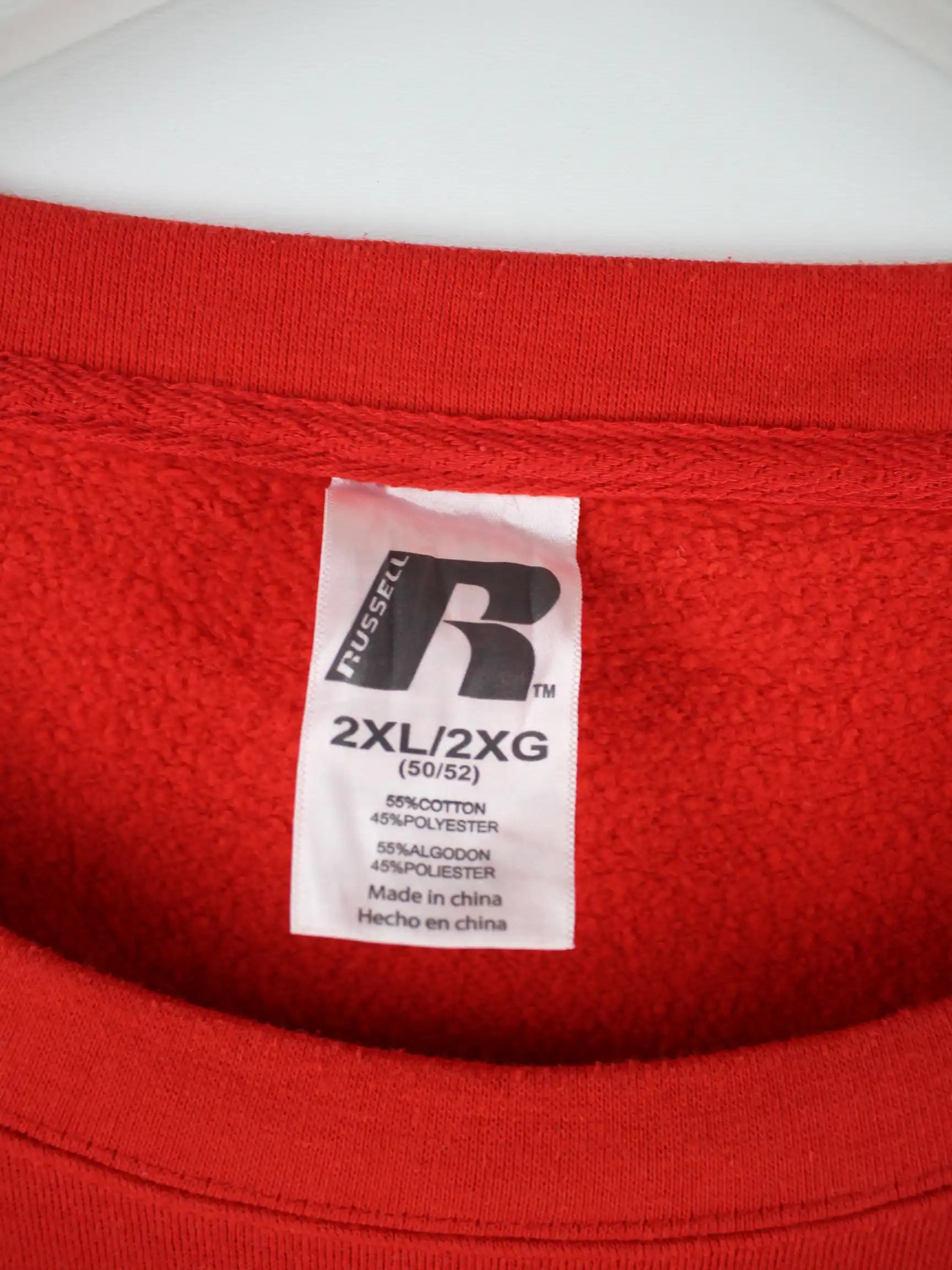 Roter Sweater der Marke Russell Athletic in Größe XXL. Er ist aus einer Baumwollmischung und in gutem Zustand auf Lager.