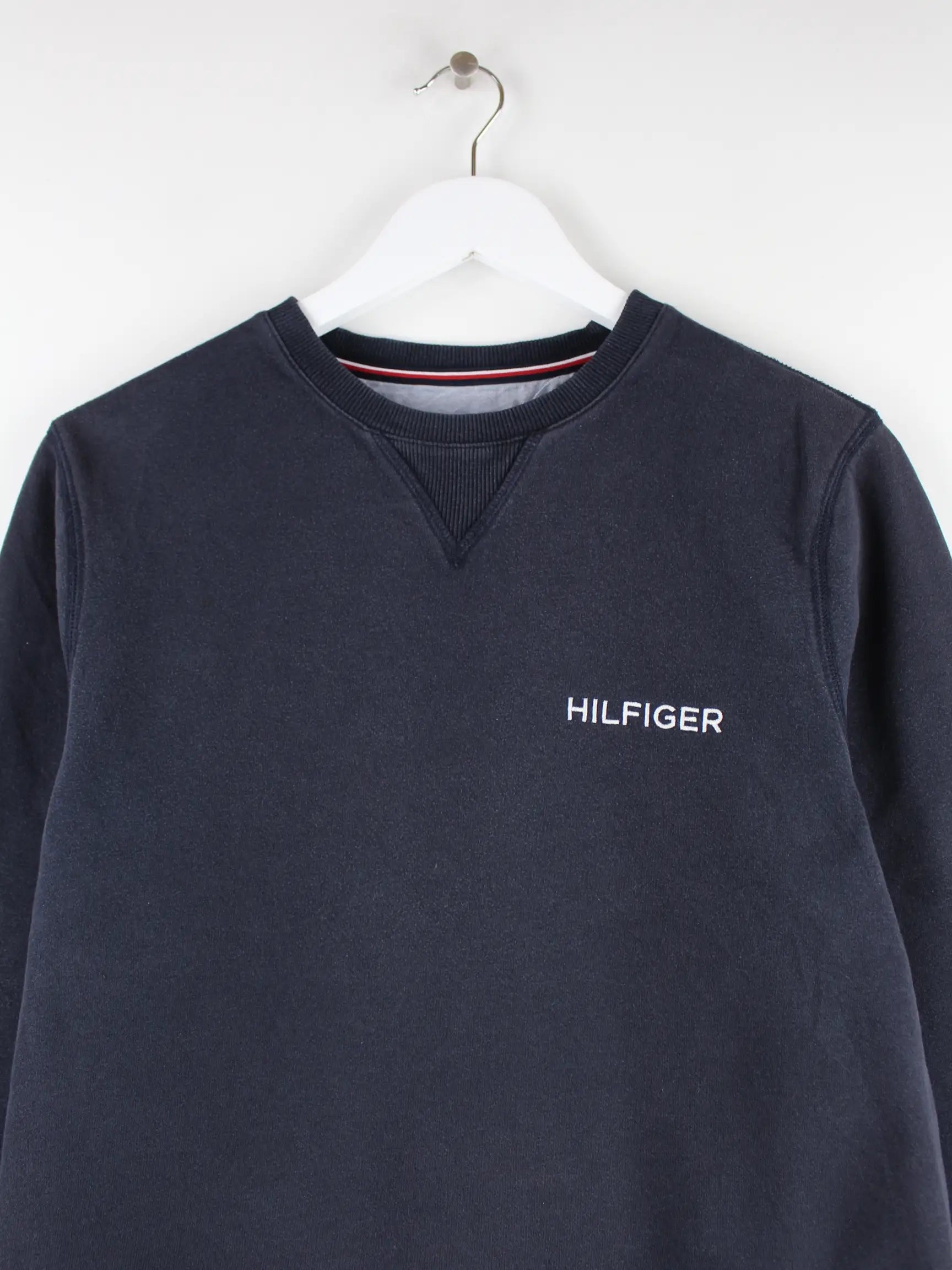 Blauer Sweater vom Brand Tommy Hilfiger in Größe S. Er ist aus einer Baumwollmischung angefertigt und in gutem Zustand in Stock.