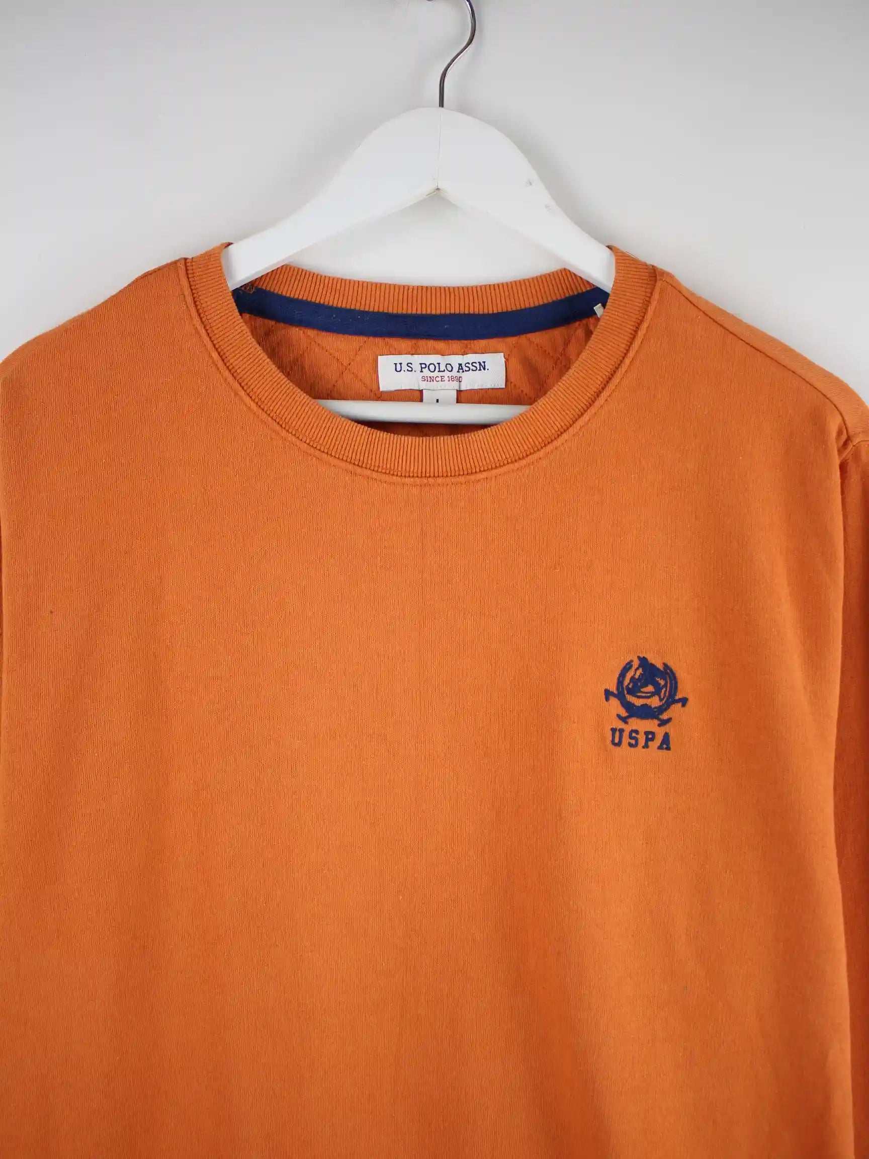 Sweater vom Label U.S. Polo ASSN. in Größe L. Er ist aus einer Baumwollmischung produziert und in Orange im Angebot.