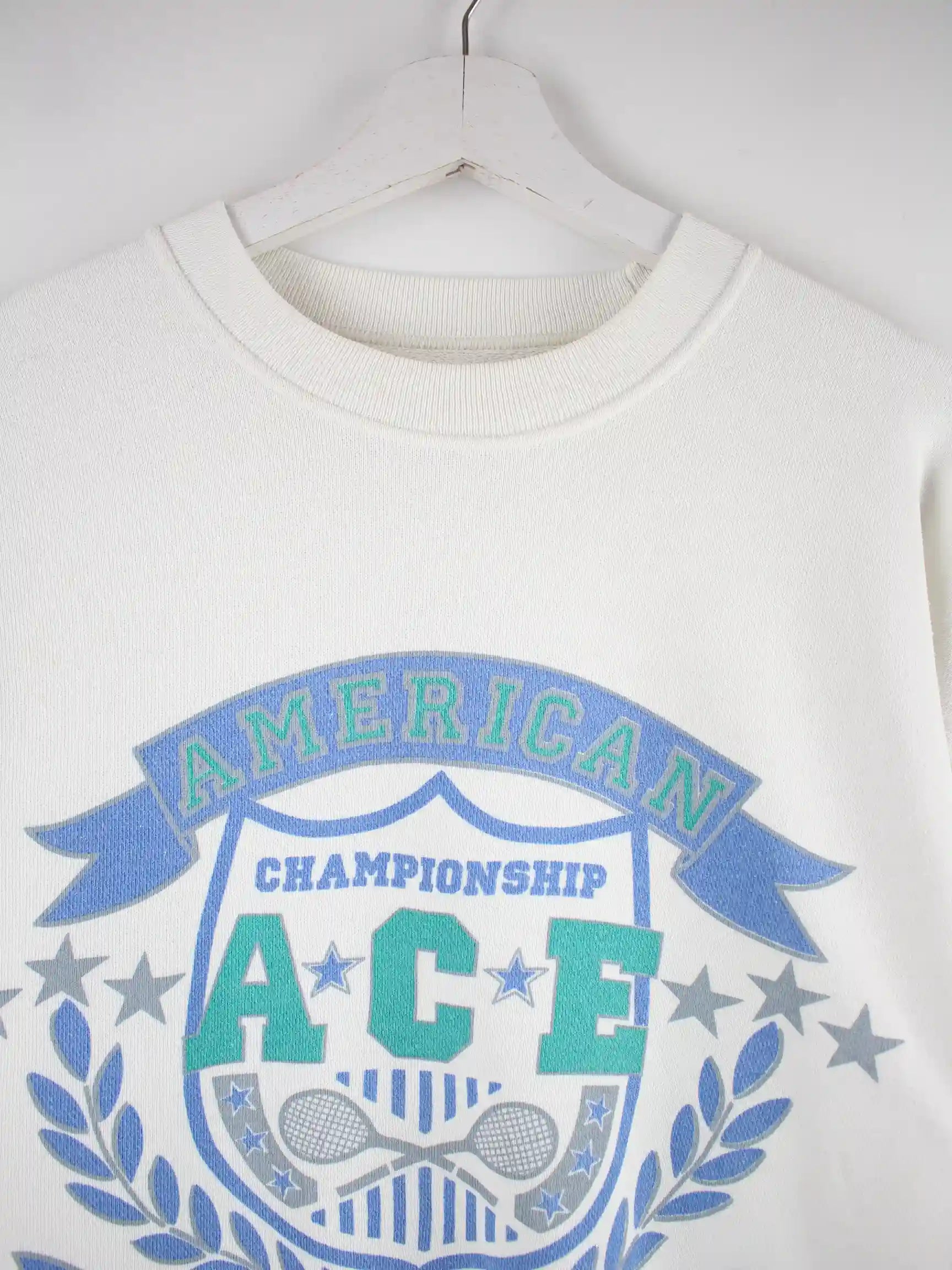 Vintage 00s American Tennis College Print Sweater Weiß L