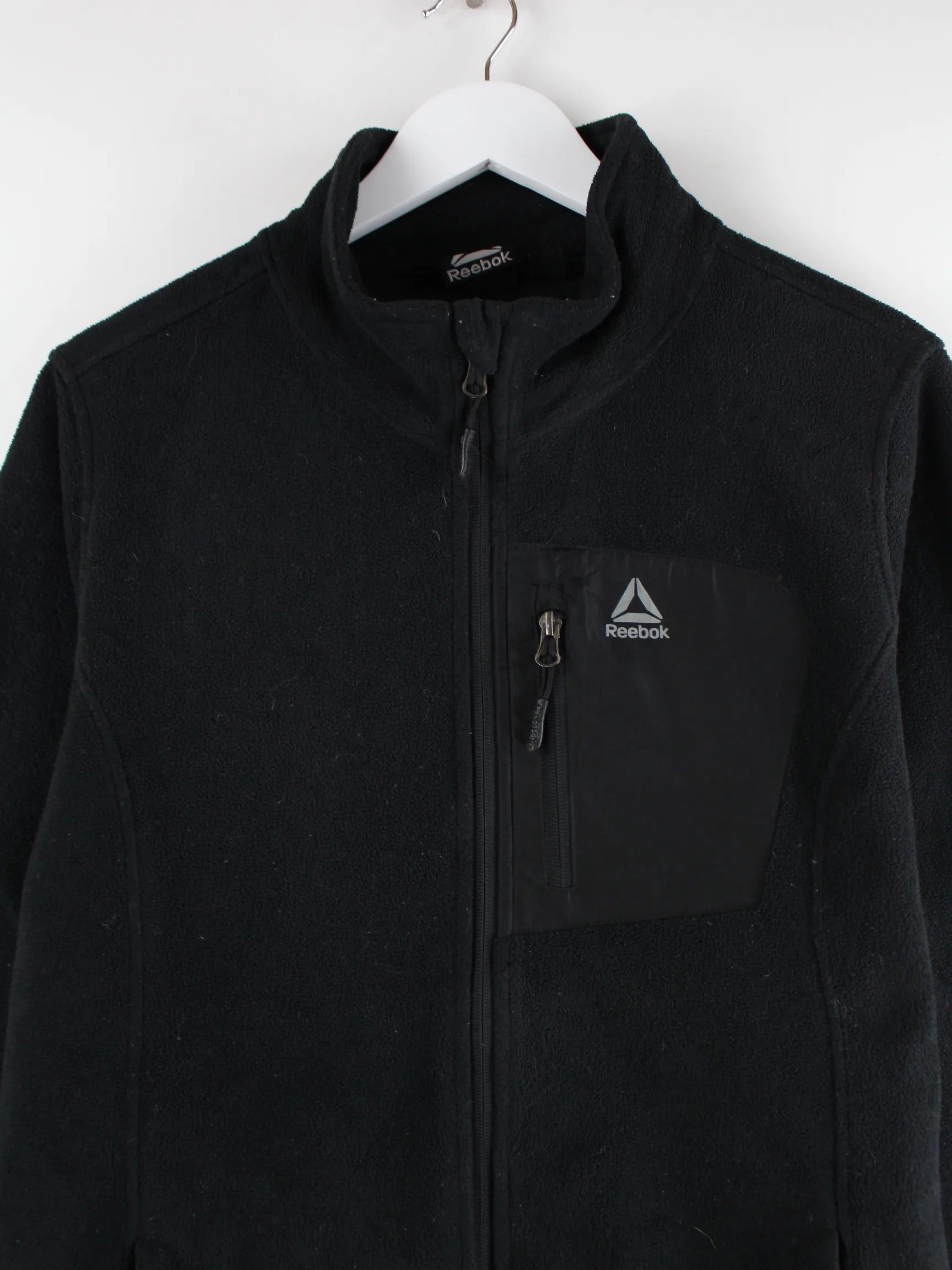 Leichte Jacke der Brand Reebok in Größe L. Sie ist aus kuscheligem Fleece hergestellt und in Schwarz lieferbar.