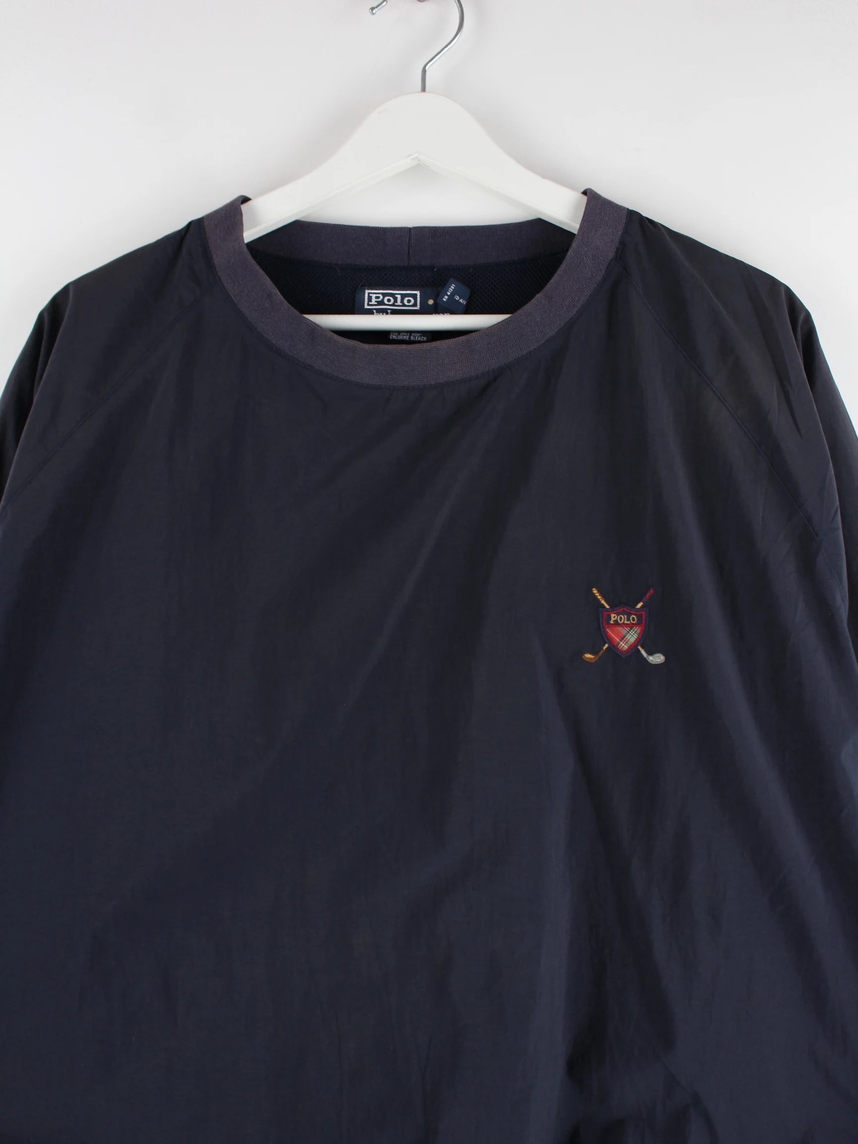 The V-neckline and functional windbreaker material are often characteristic of a vintage jersey sweater. Whether basic or as a college variation - this piece gives your outfit that unique touch!