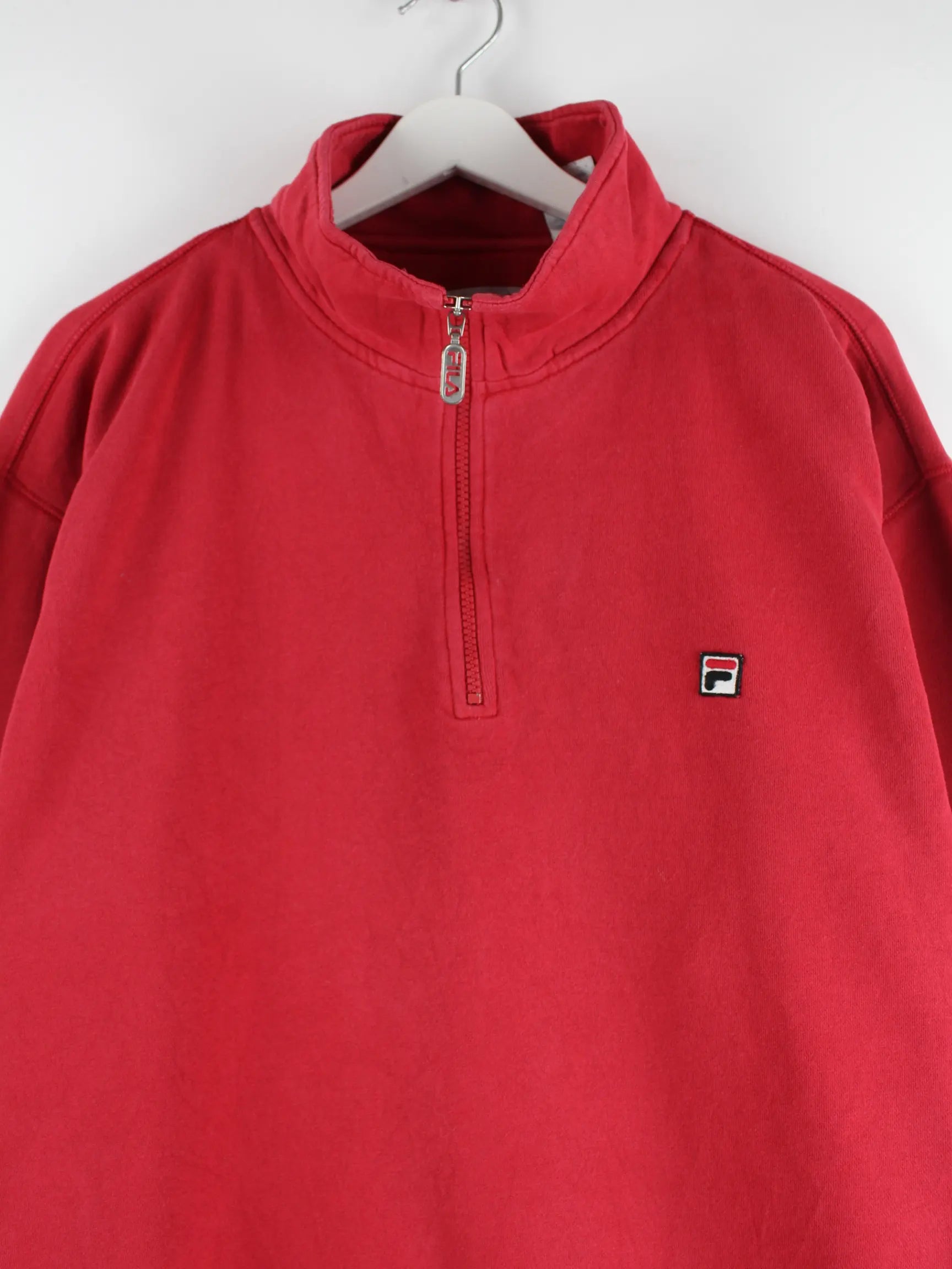 Sweater der Marke Fila mit half Zip in Größe L. Er ist aus einer Baumwollmischung angefertigt und in Rot bei uns zu bekommen.