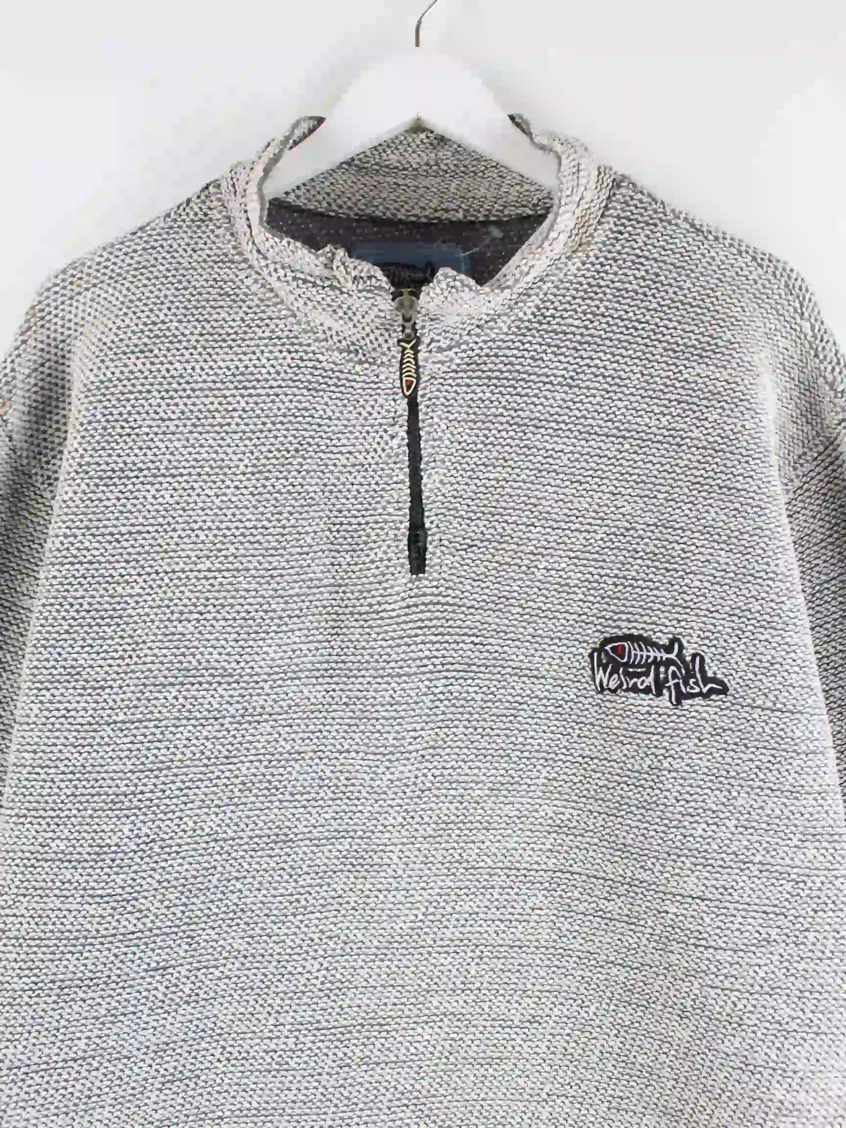 Grauer Sweater mit halbem Reißverschluß der Brand Weird Fish in Größe XXL. Er ist aus einer Baumwollmischung angefertigt. Den Zustand würden wir als 'In Ordnung' bezeichnen (vergl. Bilder).