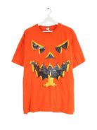 T-Shirt vom Label Jerzees in Größe XXL. Es ist aus einer Baumwollmischung gemacht und in Orange in Stock. Mit tollem Halloween Print.
